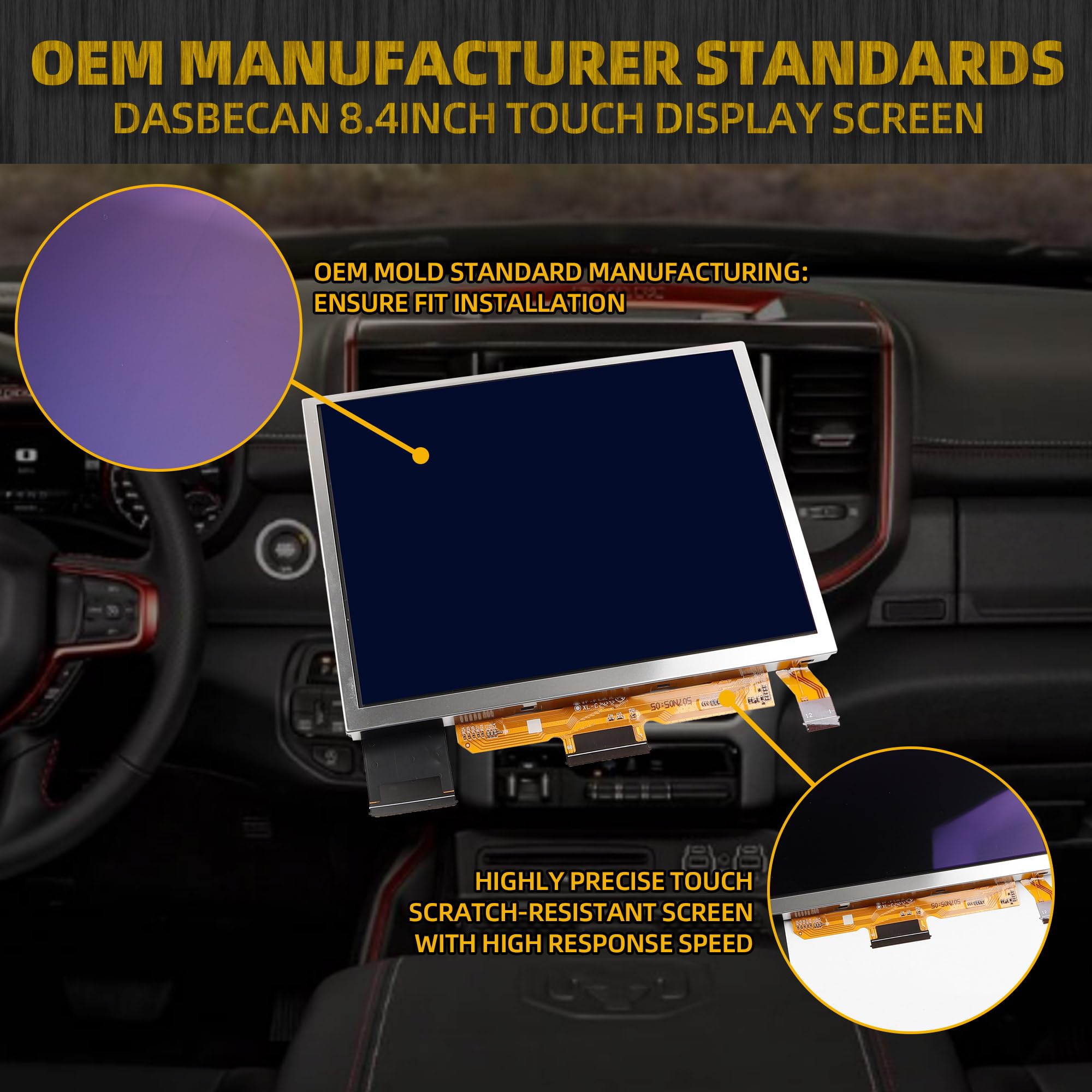 【Fitment】8.4 uconnect touch screen fits for Dodge Ram 1500 / 2500 / 3500 Chassis Cab 2018-2023 | Challenger 2017-2023 | Durango 2018-2023 | Charger 2017-2023 ; Chrysler 200 300 2017-2023 ; Jeep Grand Cherokee 2018-2023 | Wrangler 2018-2023 | Compass 2018-2023 | Gladiator 2019-2023