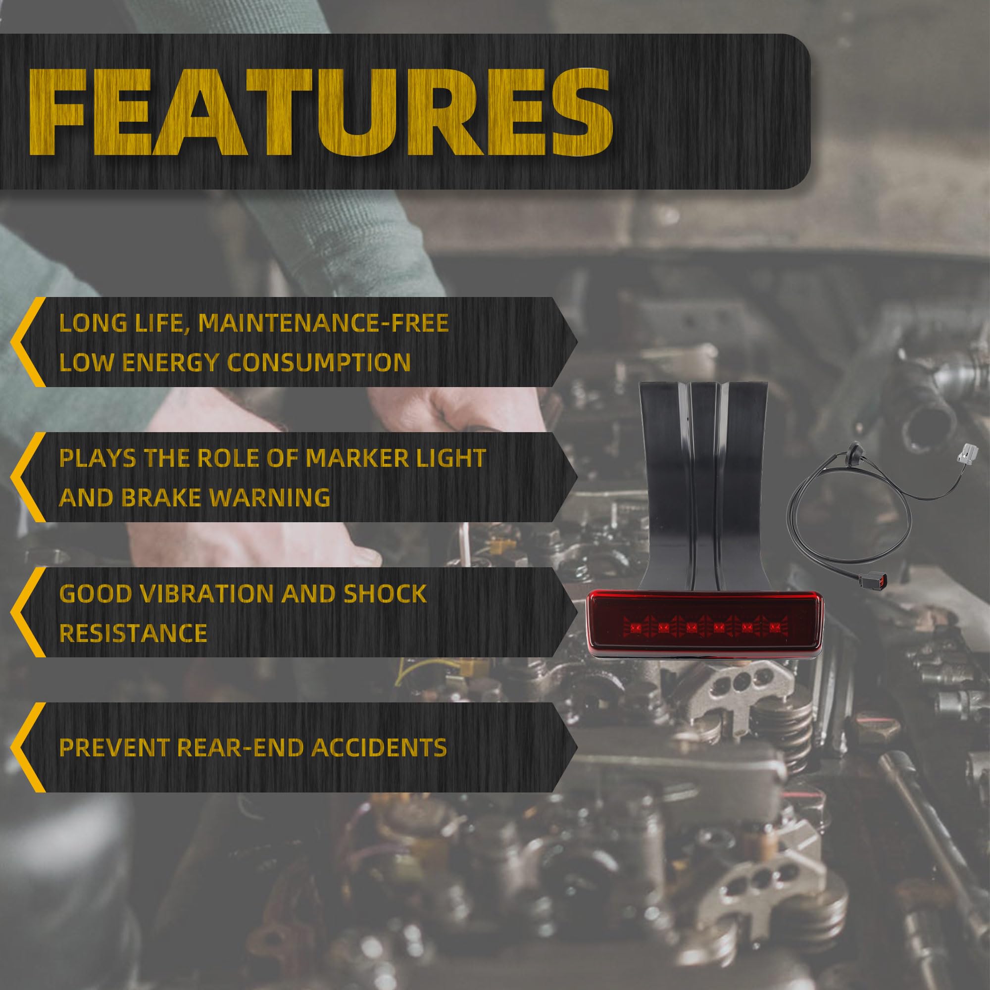 【Red LED 3rd Brake Light】 Our wrangler 3rd brake light is made of ABS plastic and sporting an IP66 waterproof rating. Not easy to damage,durability test, firm and reliable.