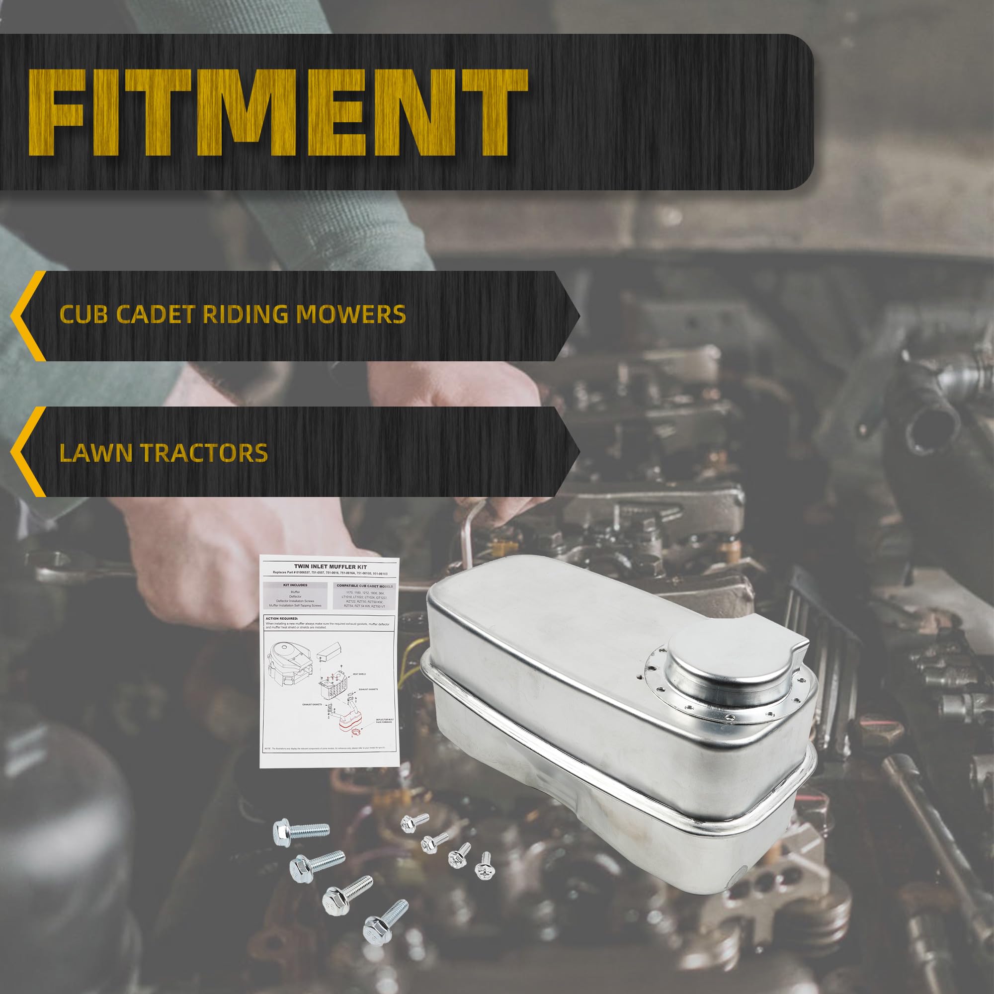 Package list:1 * muffler, 1 * deflector, 4 * deflector mounting screws, 4 * muffler mounting self tapping screws, and 1 * instruction manual.