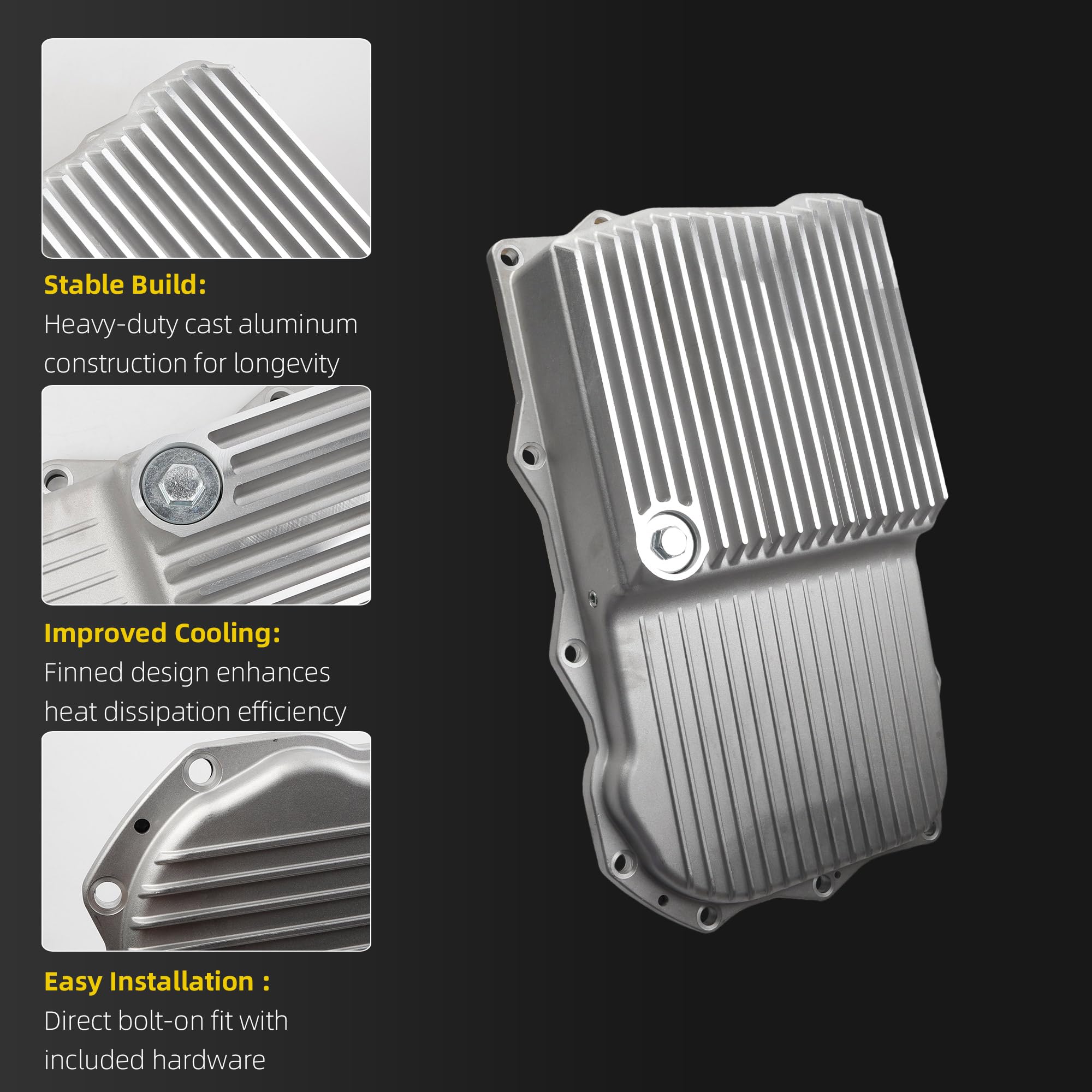 【Enhanced Cooling & Extra Capacity】 Increases fluid capacity by up to 2 quarts and improves heat dissipation with finned aluminum design, helping maintain lower transmission temperatures even under heavy loads.