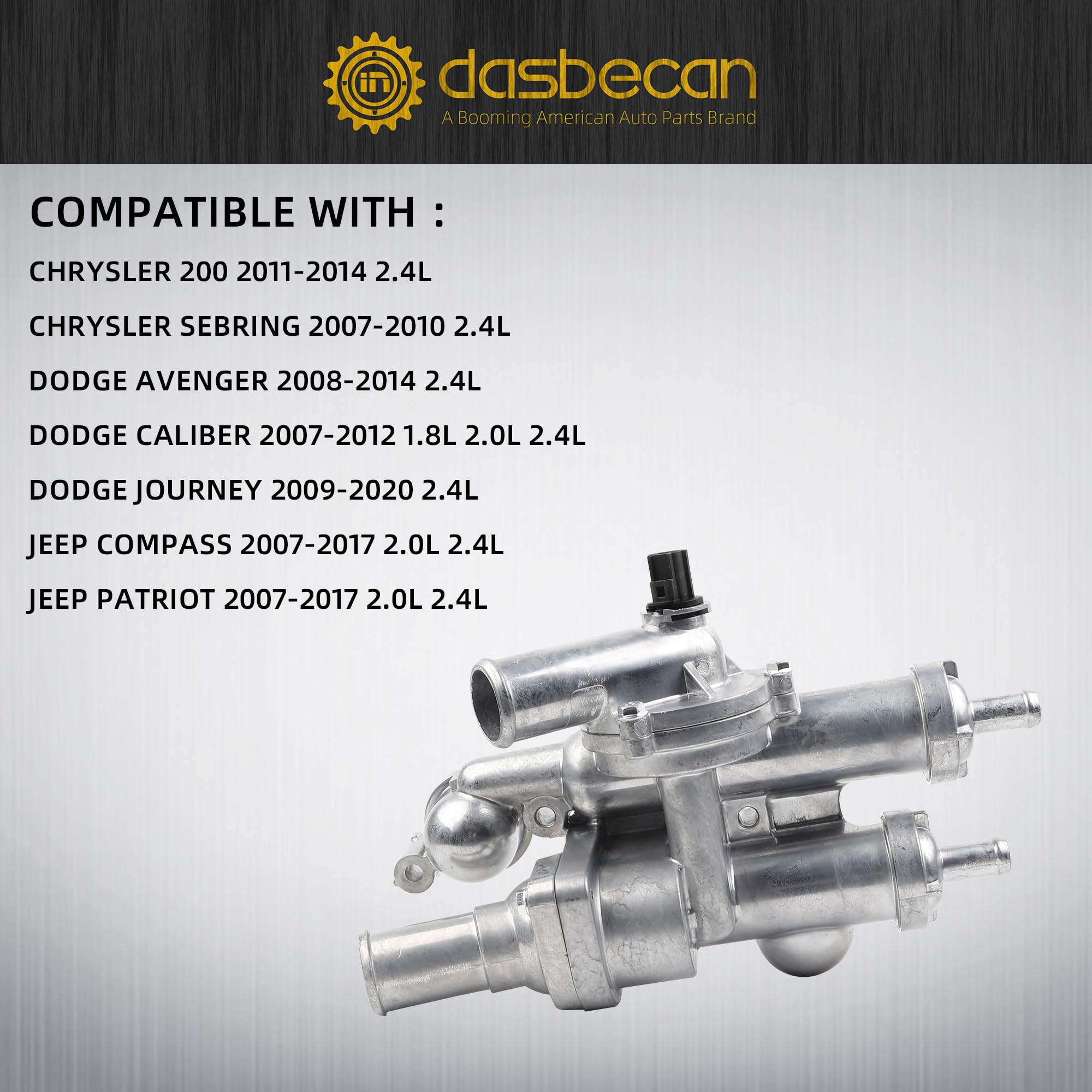 【Fitment】The Thermostat Housing Assembly fits for 2007-2010 Chrysler Sebring, 2011-2014 Chrysler 200, 2007-2012 Dodge Caliber, 2009-2020 Dodge Journey, 2008-2014 Dodge Avenger, Jeep Compass 2009-2017, Jeep Patriot 2013-2017