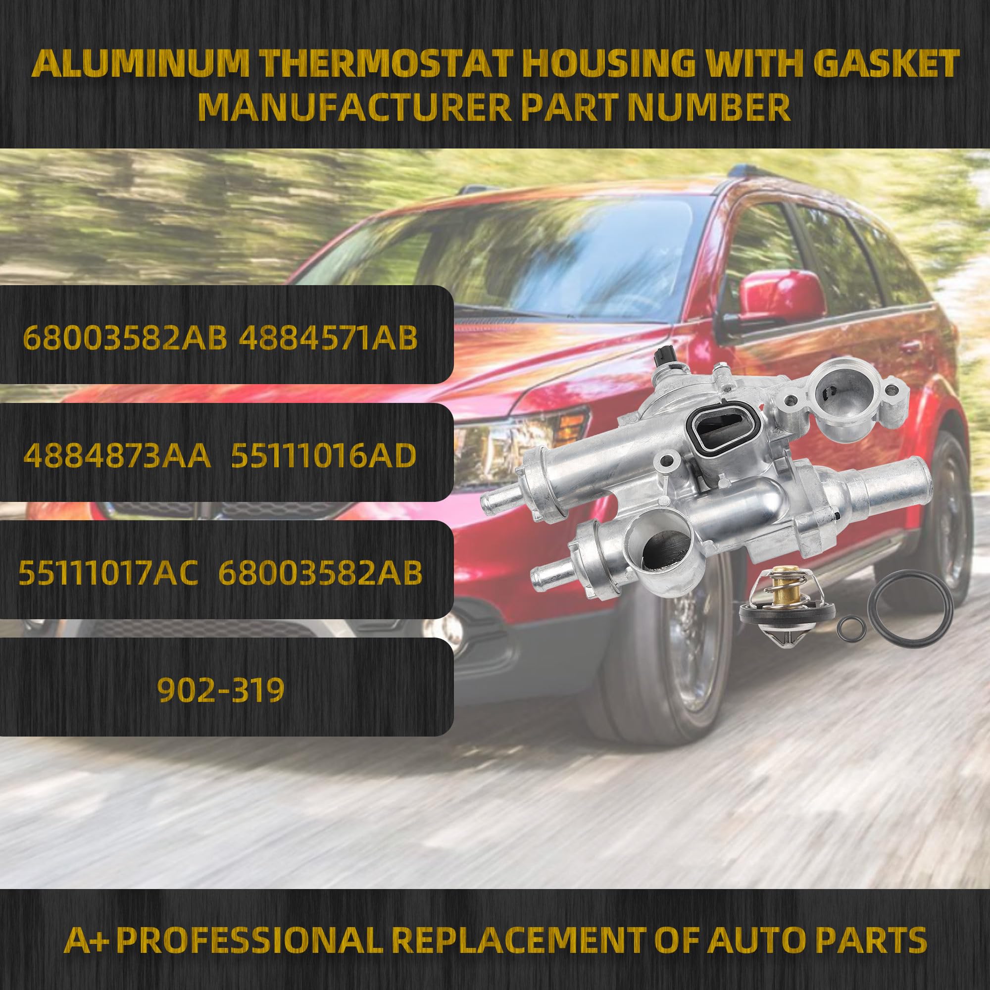 【Replace】 The Thermostat Housing replaces# 68003582AB, 4884571AB, 4884873AA, 55111016AD, 55111017AC, 68003582AB, 902-319