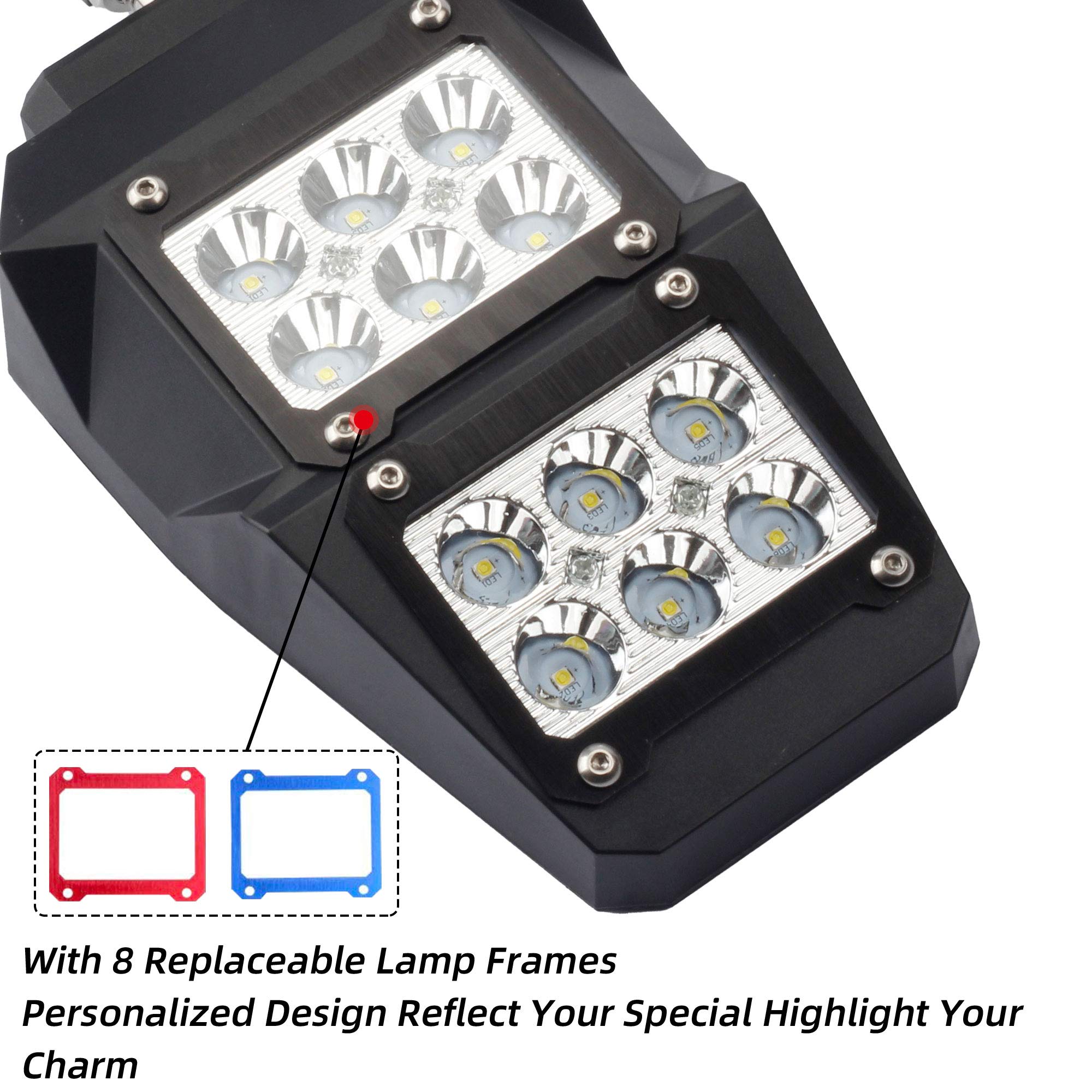 【Package list】2x Side Rear View mirrors,3x Wrenchs,4x Red Lamp Frames,4x Blue Lamp Frames