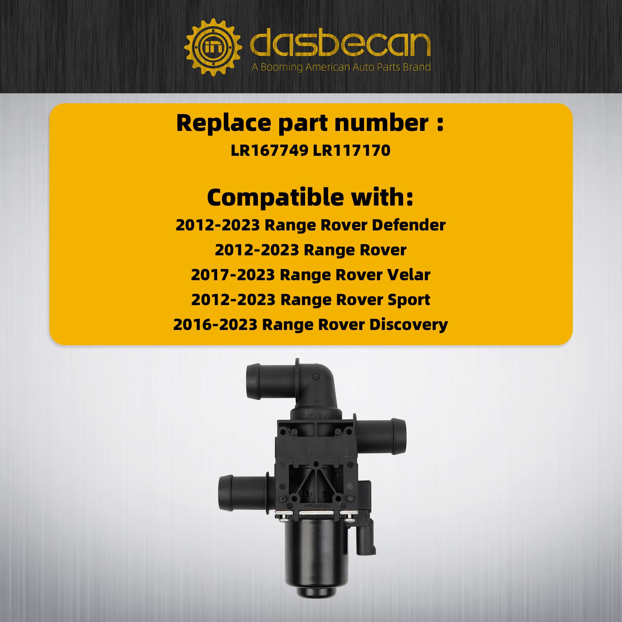 【Fitment】 The Water Heater Control Valve fits for 2012-2023 Range Rover Defender ; 2012-2023 Range Rover ; 2017-2023 Range Rover Velar ; 2012-2023 Range Rover Sport ; 2016-2023 Range Rover Discovery.