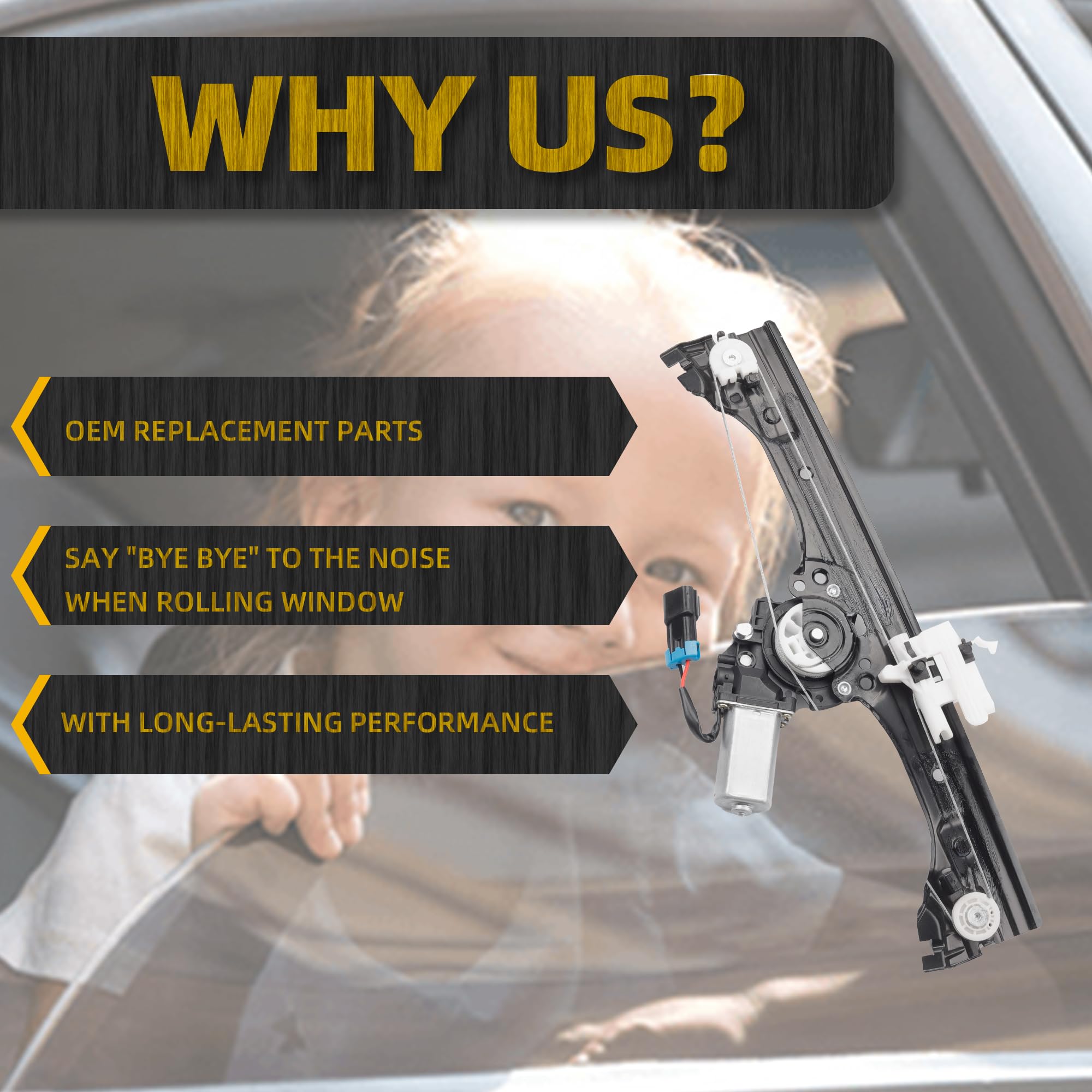 Features: High-strength steel cable ensures smooth and controlled movement of the window glass, surdy construction, wear-resistant and corrosion-resistant, equipped with premium motor to ensure long service life and stable performance.