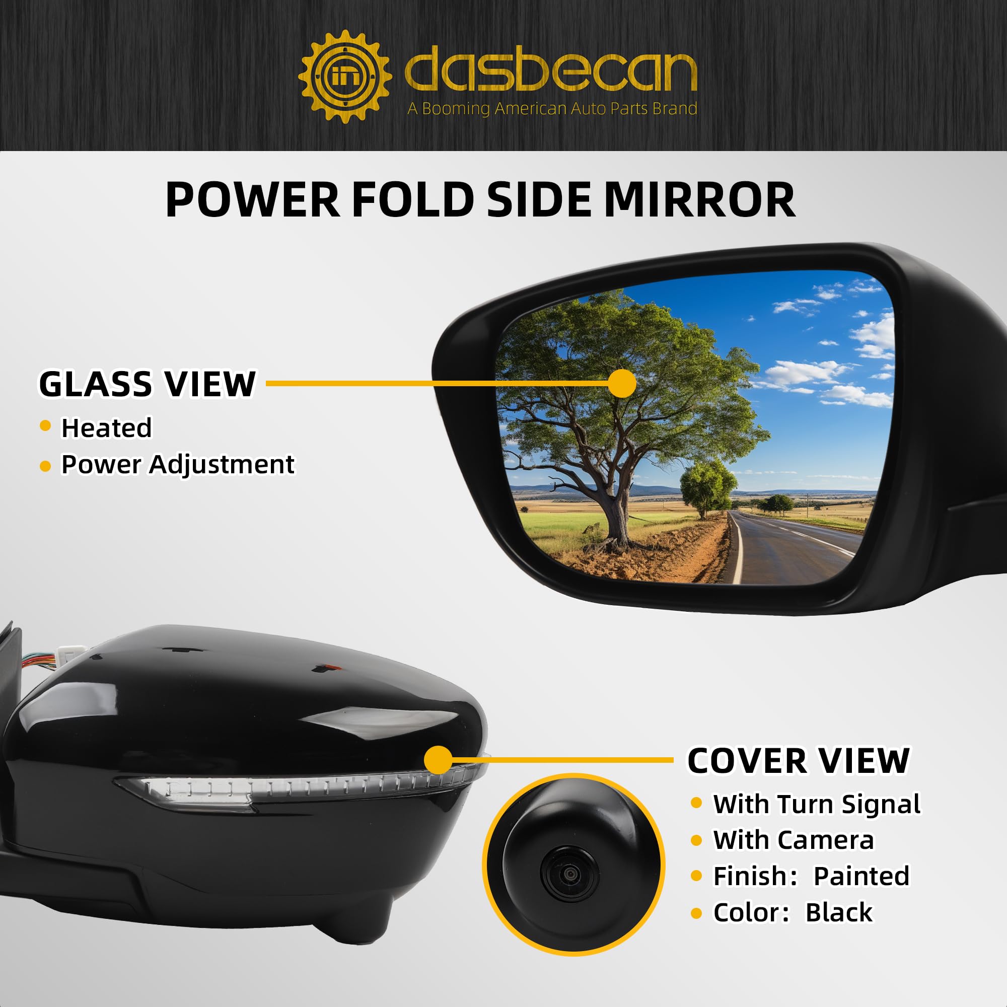 Function: Left driver side, with Canera, Heated, Turn Signal, Manual folding (Not fit power folding), Powered adjustment glass, 13 pins