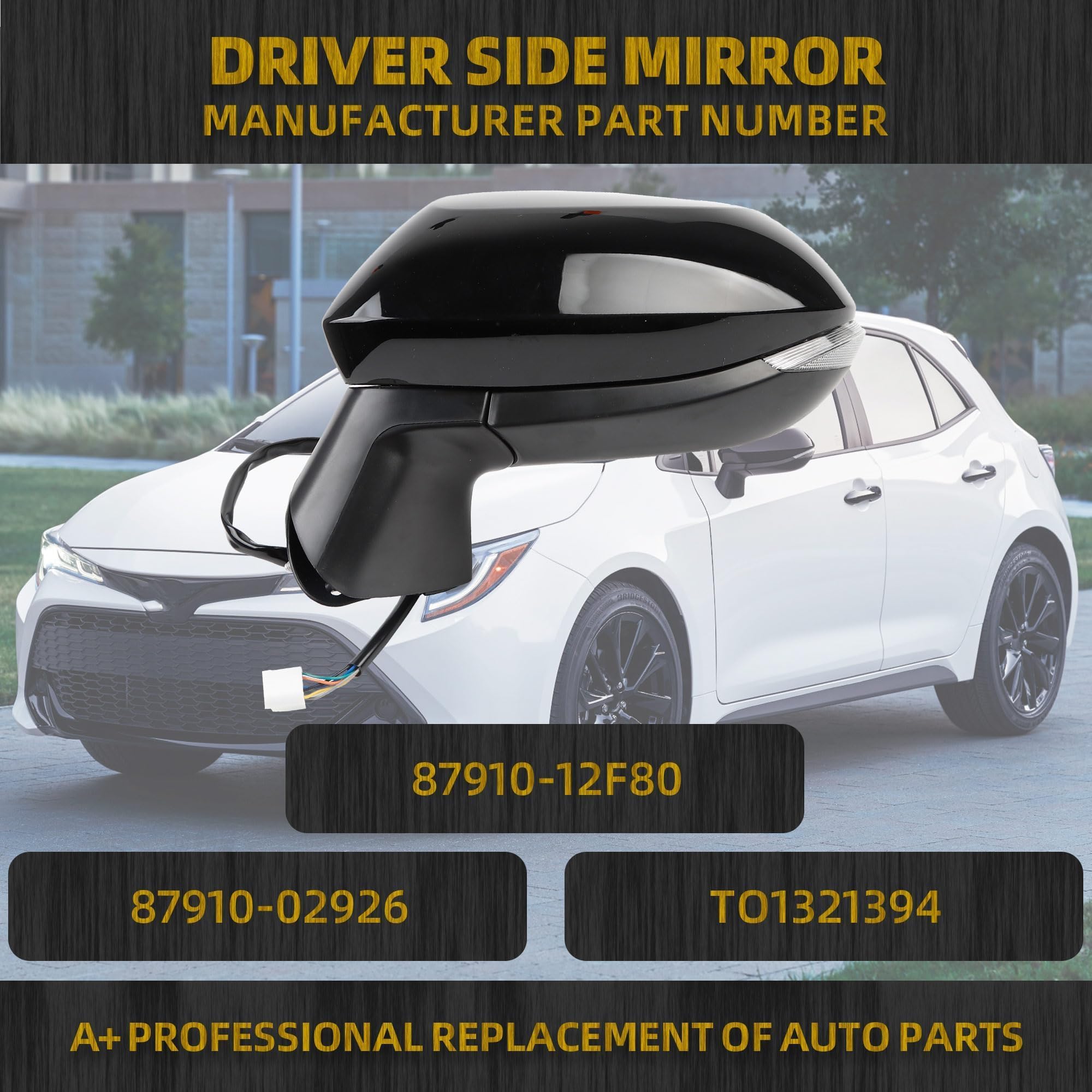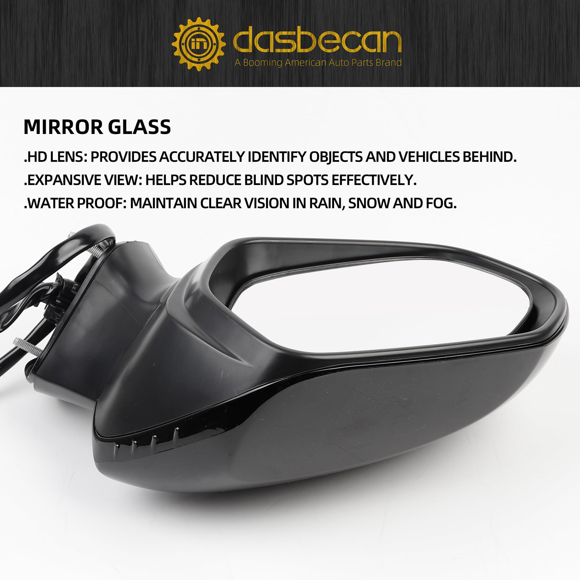 [Specifications] Position: Front Left Driver Side; Color: Black ( Paint to Match ) ; Plug Configuration: 6 Wires/Pins. Fuction: Manual Folding (NOT FIT FOR POWER FOLDING!!!), Power Adjustment Glass, With Turn Signal, With Heating.