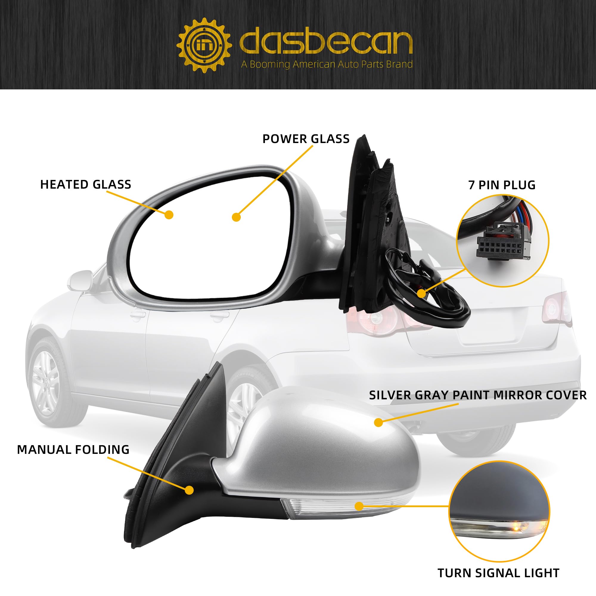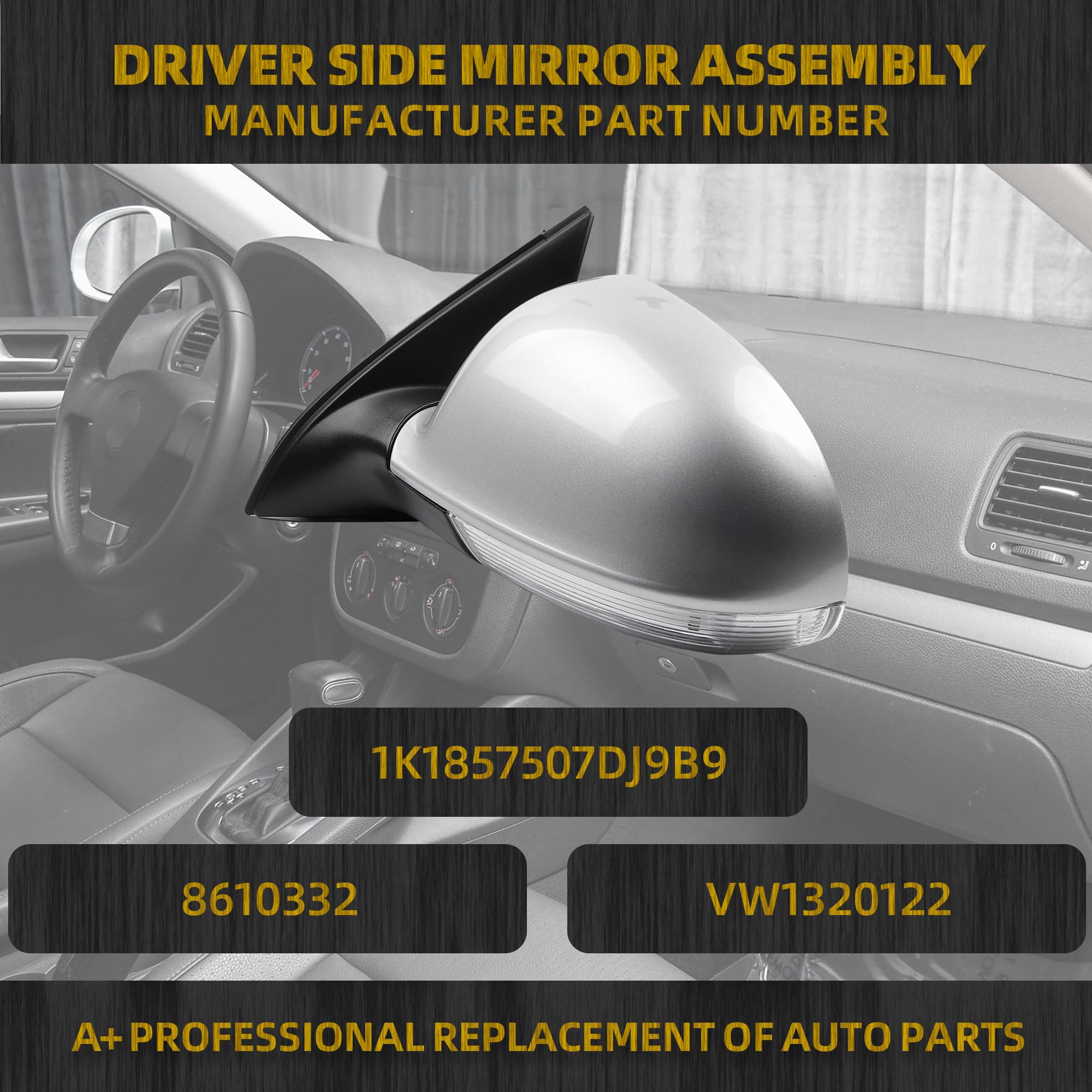 【Comaptible With】The Left Side Mirror Compatible With 2005 2006 2007 2008 2009 2010 Volkswagen Jetta(Silver Gray Cover)