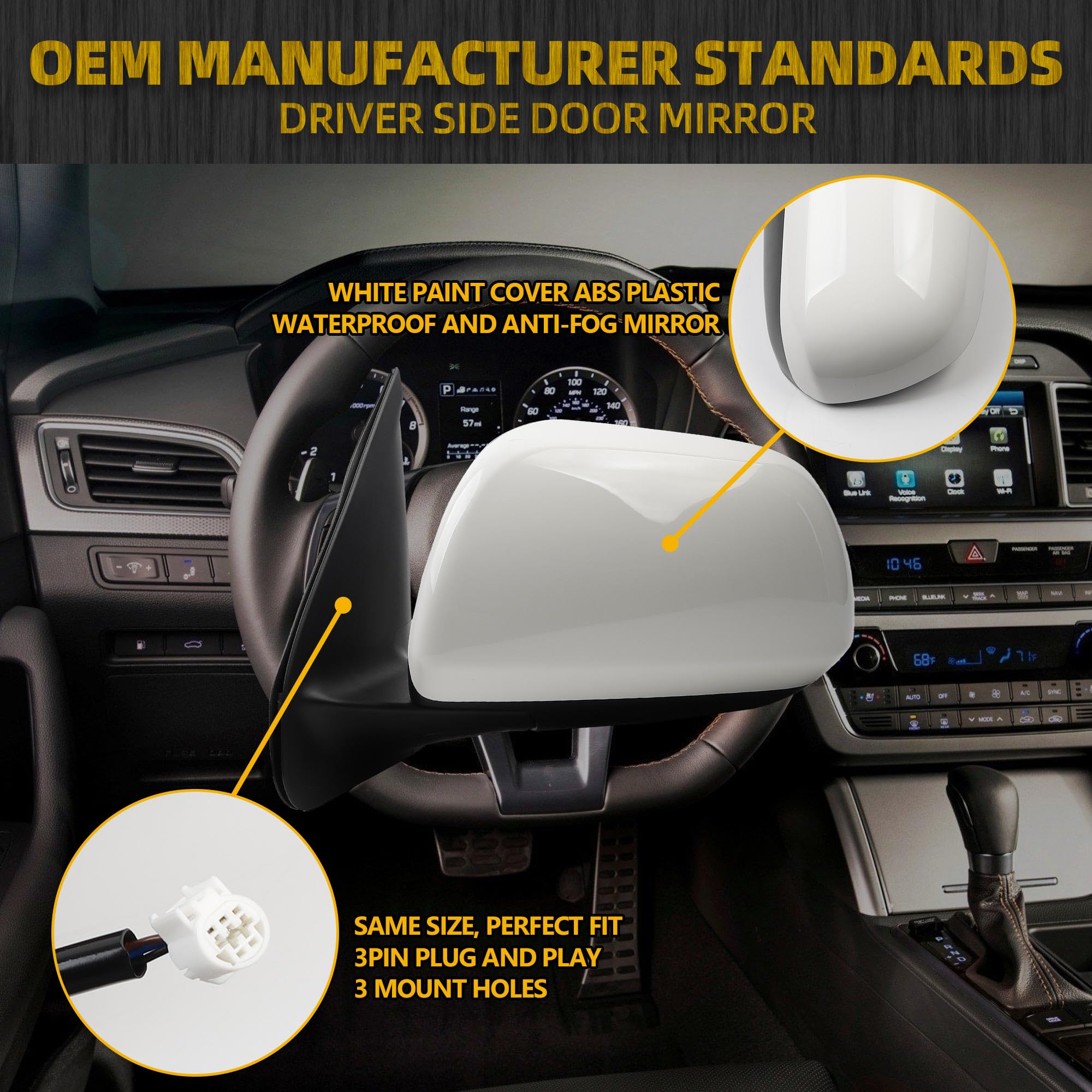 【Function】The Left Rearview Mirror Equipped with Power Adjustment And Manual Folding Functions. Without Heated Or Turn Signal. White Paint Cover, Match car body's paint