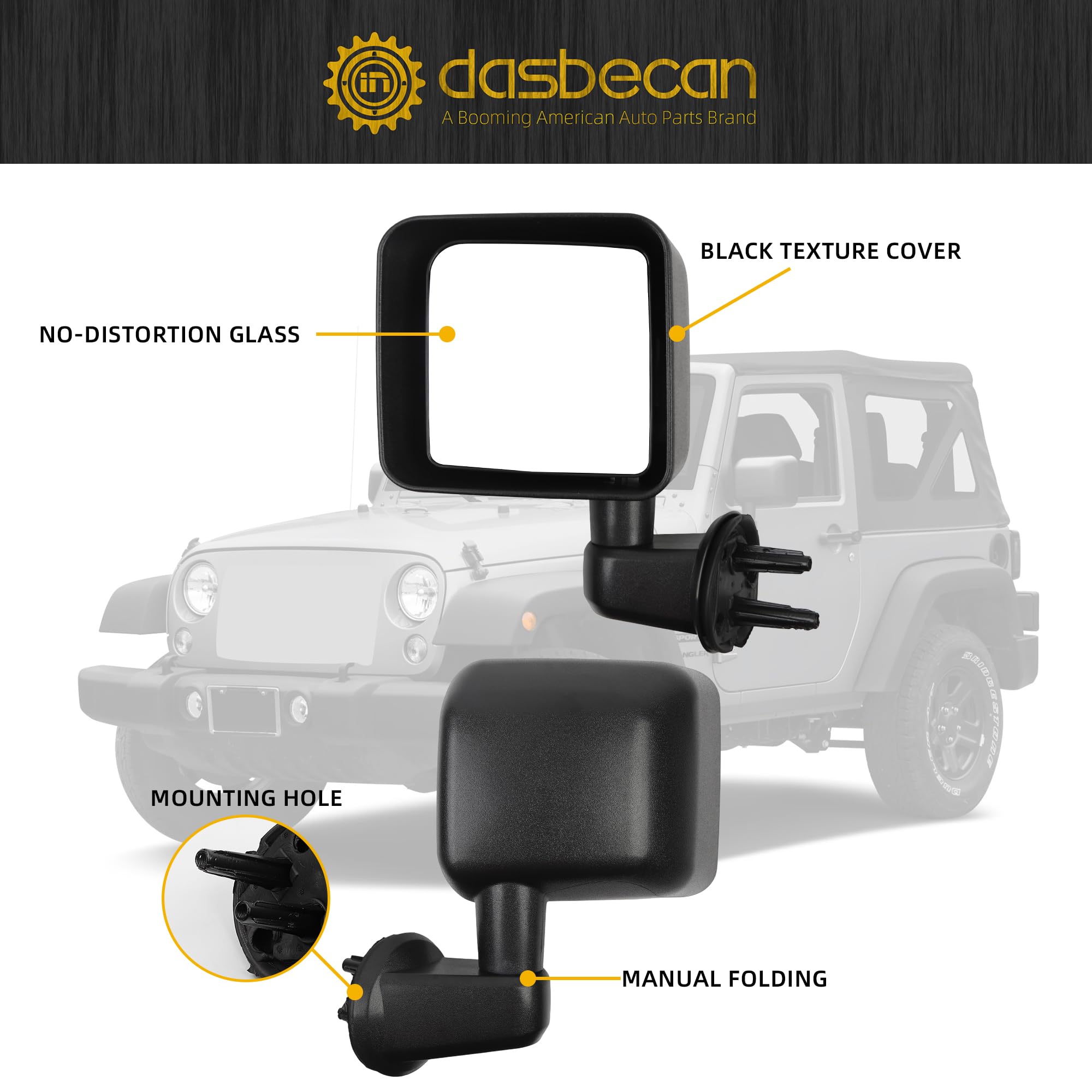 【Comaptible With】The Left Side Mirror Compatible With 2007 2008 2009 2010 2011 2012 2013 2014 2015 2016 2017 2018 Jeep Wrangler JK (Rubicon / Sahara)