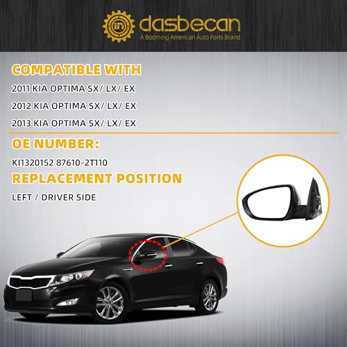 【Comaptible With】The Driver Side Door Mirror Compatible With 2011 2012 2013 Kia Optima SX/ LX/ EX (Black)