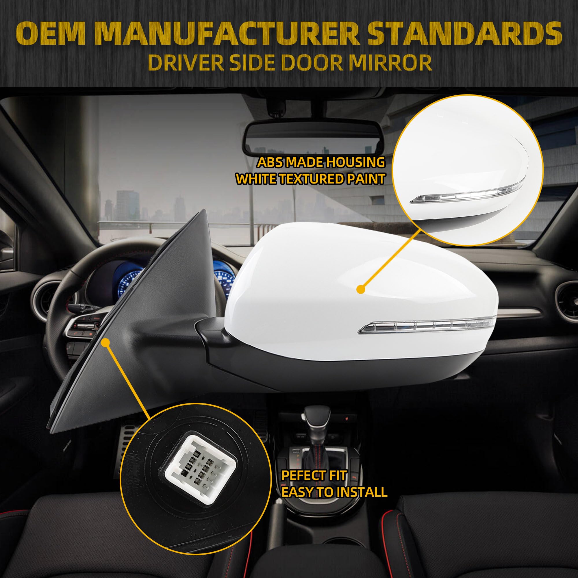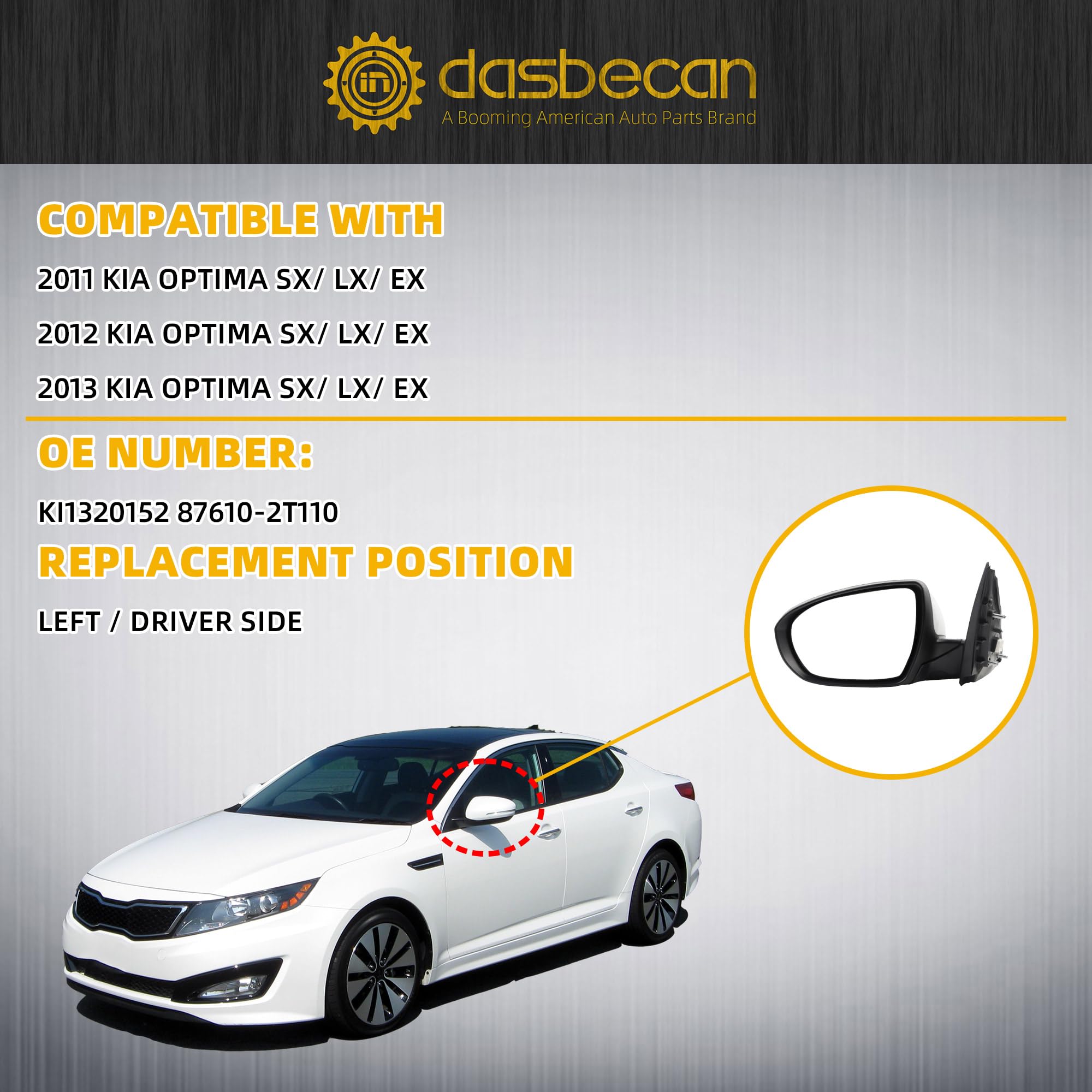 【Comaptible With】The Driver Side Door Mirror Compatible With 2011 2012 2013 Kia Optima SX/ LX/ EX (White)