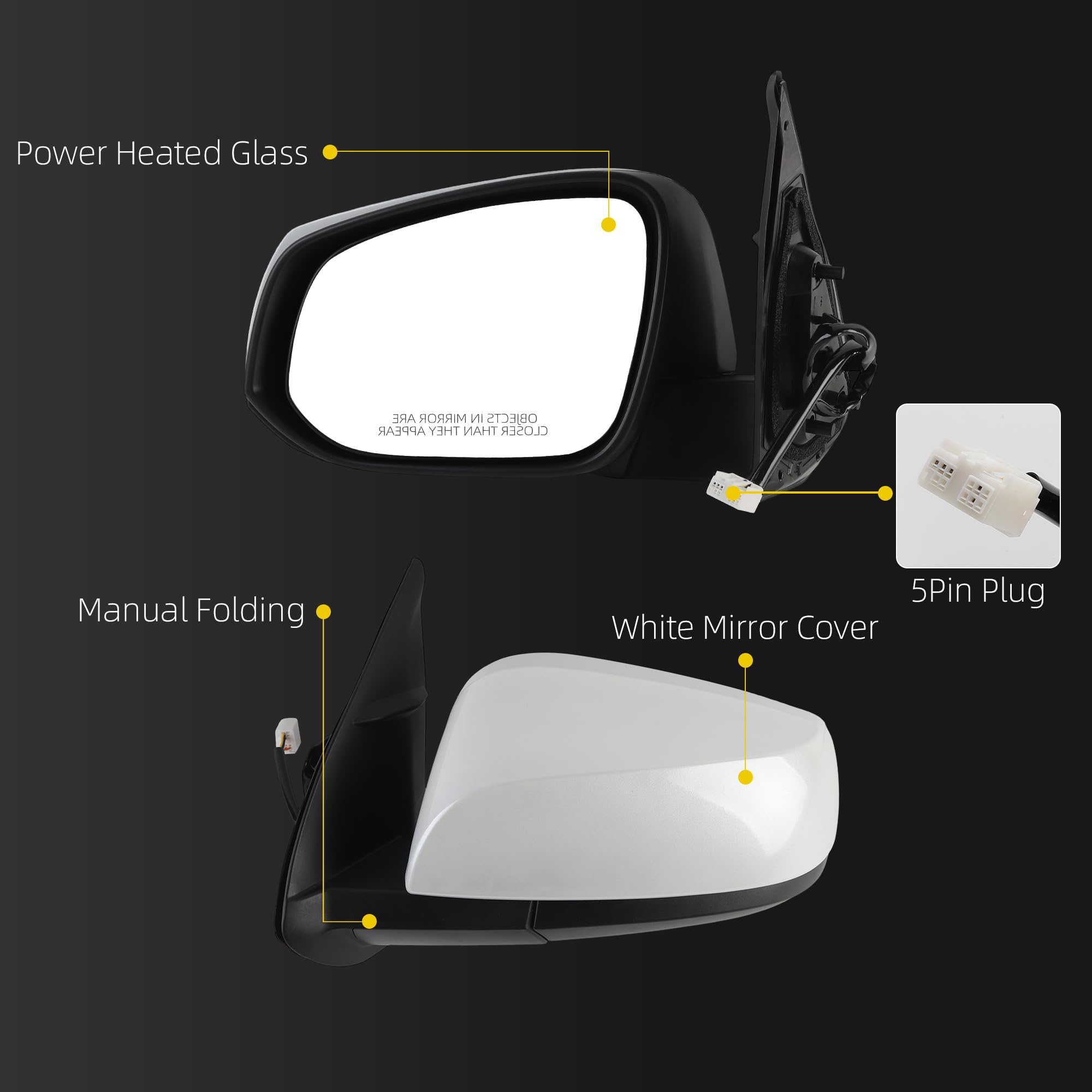 【Feature】 The Left Side View Mirror is Equipped with Power Heated Glass丨Manual Folding丨Without Signal Light丨Without Blind Spot Light; Please Test Functions Before Buckling The Panel