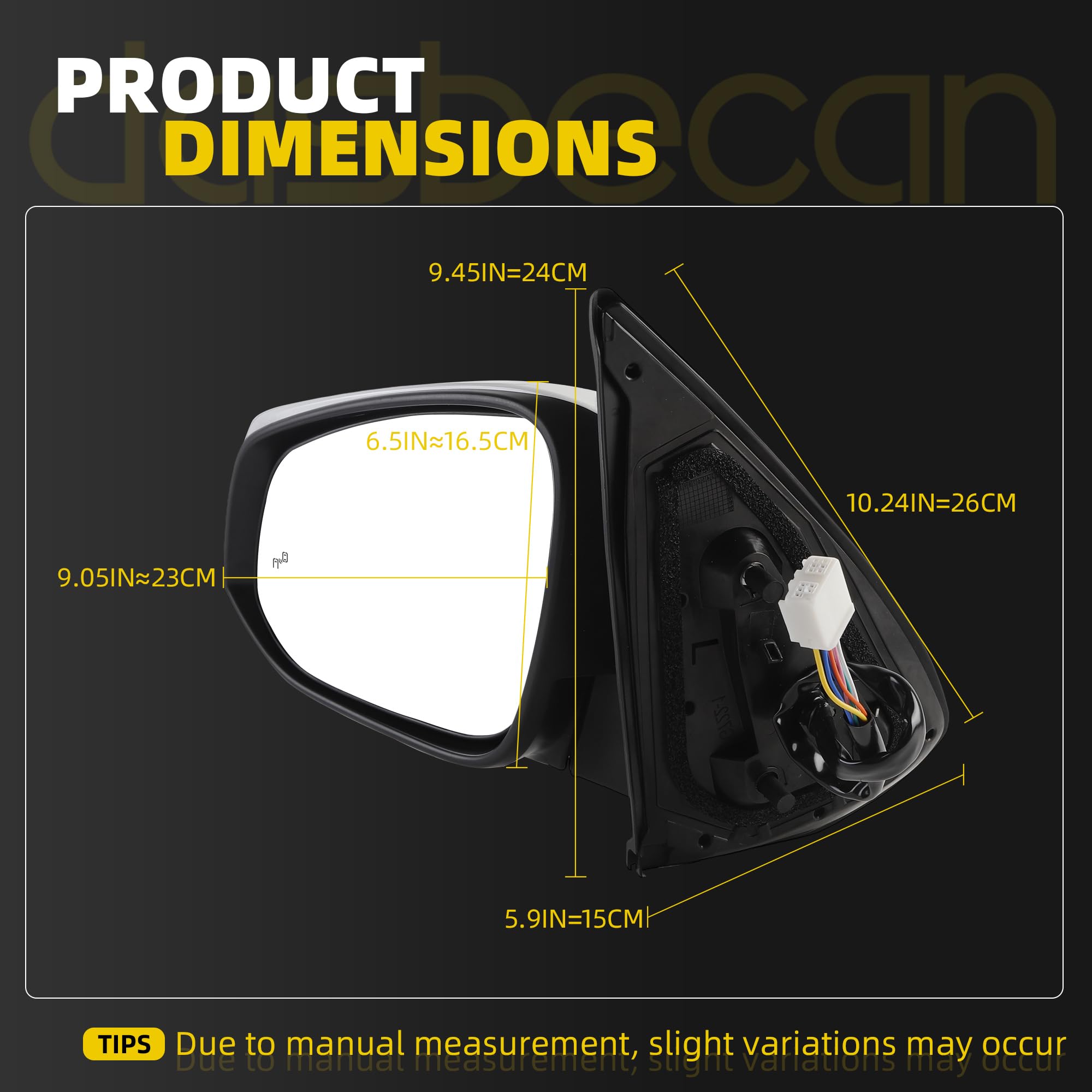 【Feature】 The Left Side View Mirror is Equipped with Power Heated Glass丨Manual Folding丨Turn Signal Light丨 Blind Spot Light; Please Test Functions Before Buckling The Panel