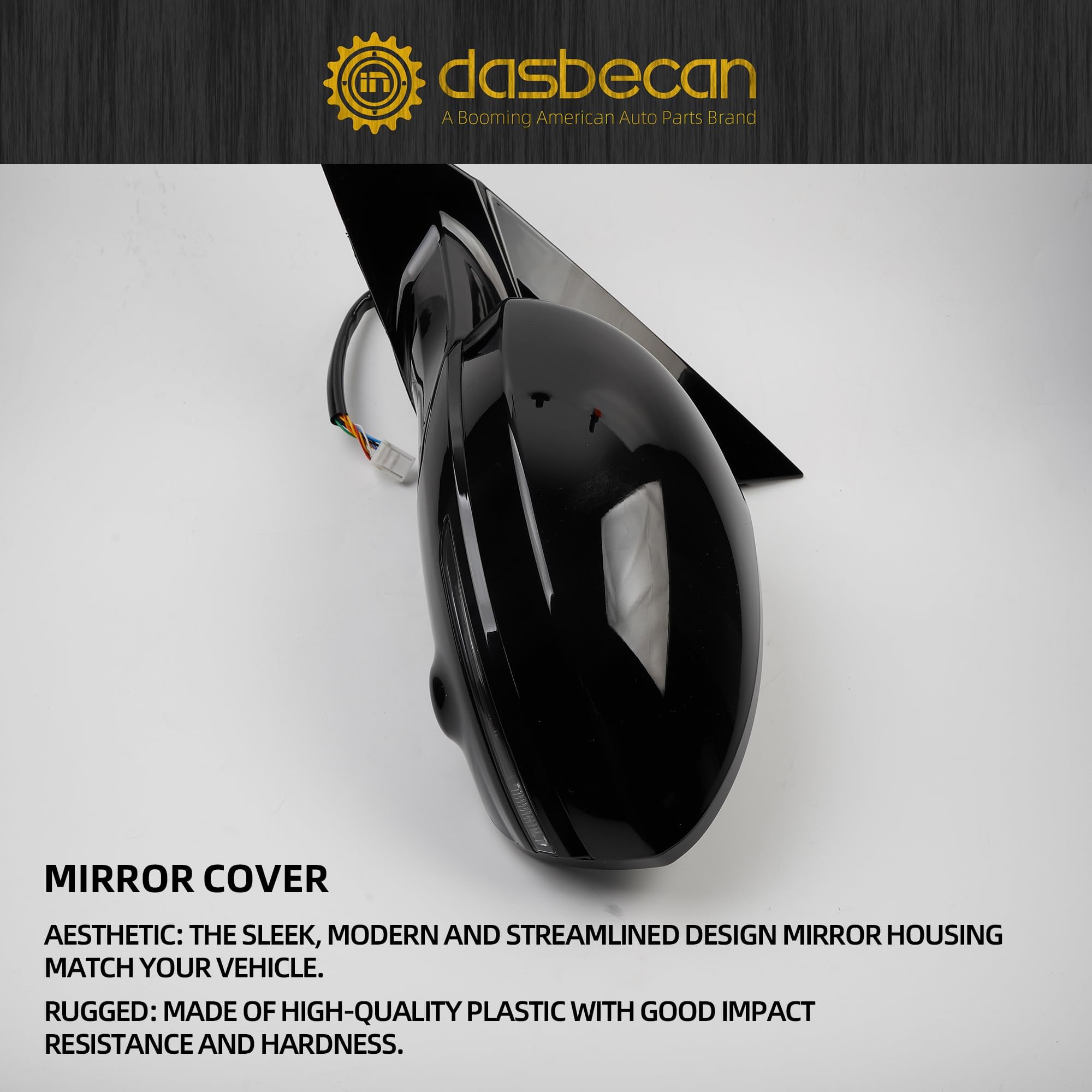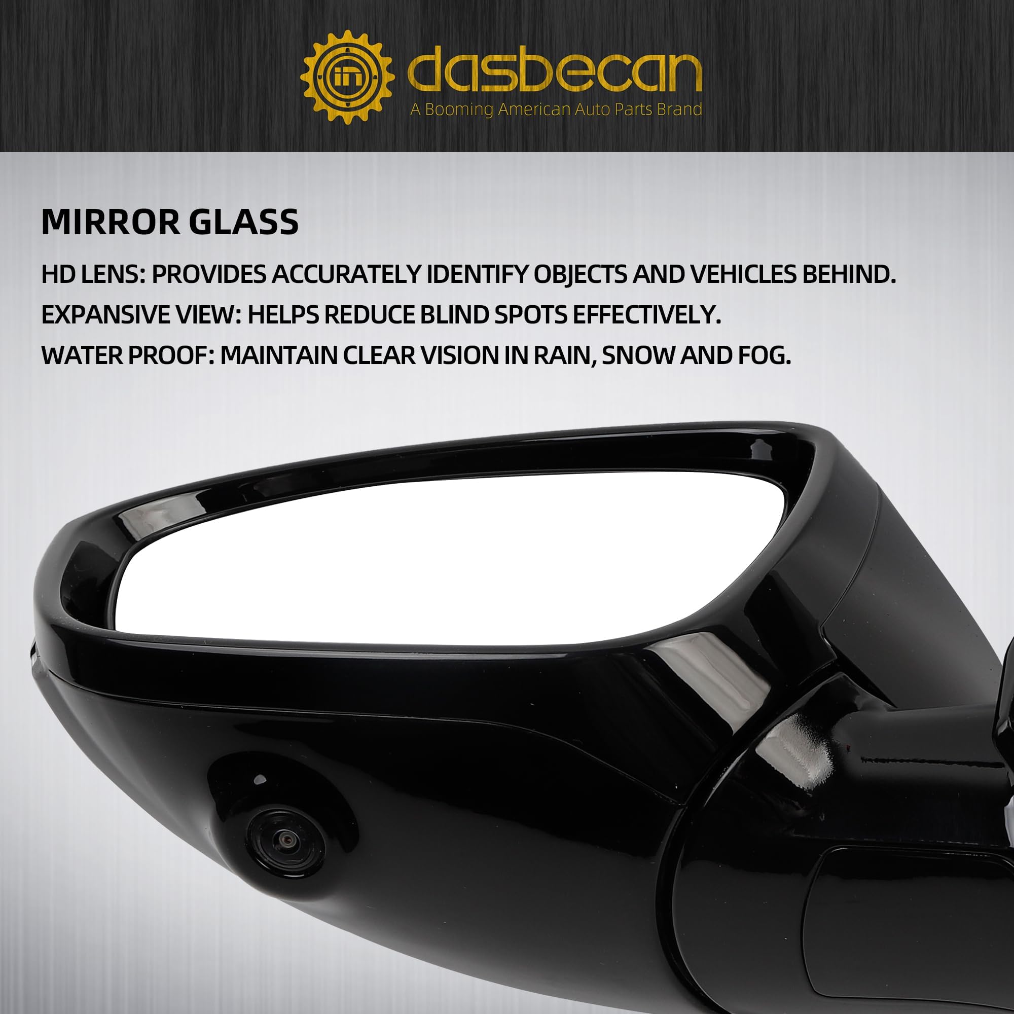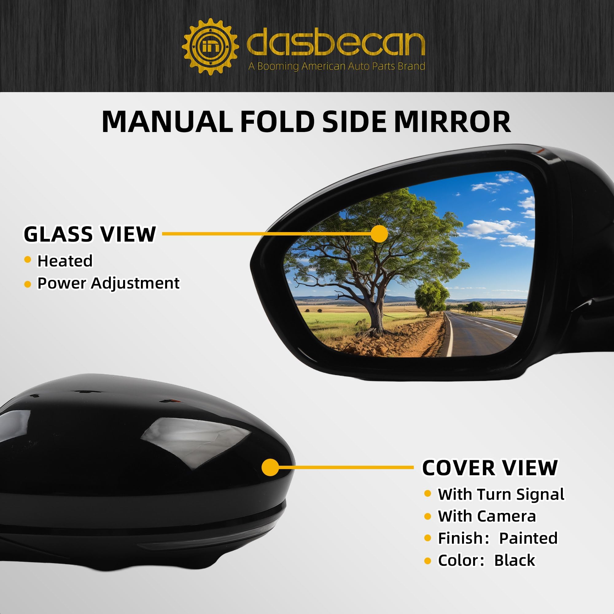 Specifications: Position: Front Left (Driver Side Mirror); Color: Paint to Black; Number of interfaces: 10 Wires/Pins; Function (Heated; With Turn Signal Light; With Blind Spot Detection Camera; Power Adjustment Glass; Folding Type: Manual Folding).
