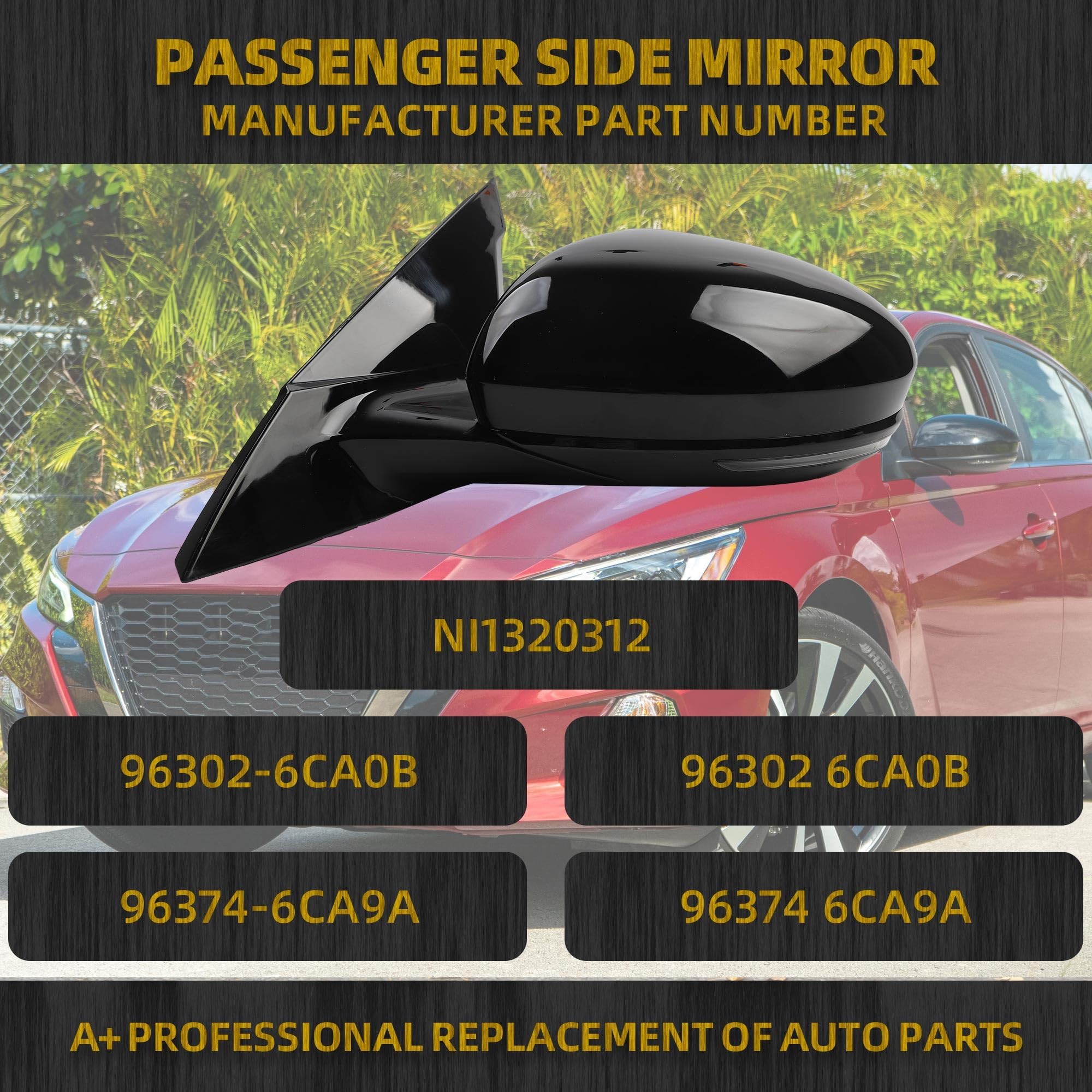 Compatible with: Nissan Altima 2019 2020 2021 2022 2023, Black, 6PINS, (LH) Left Side Mirror.