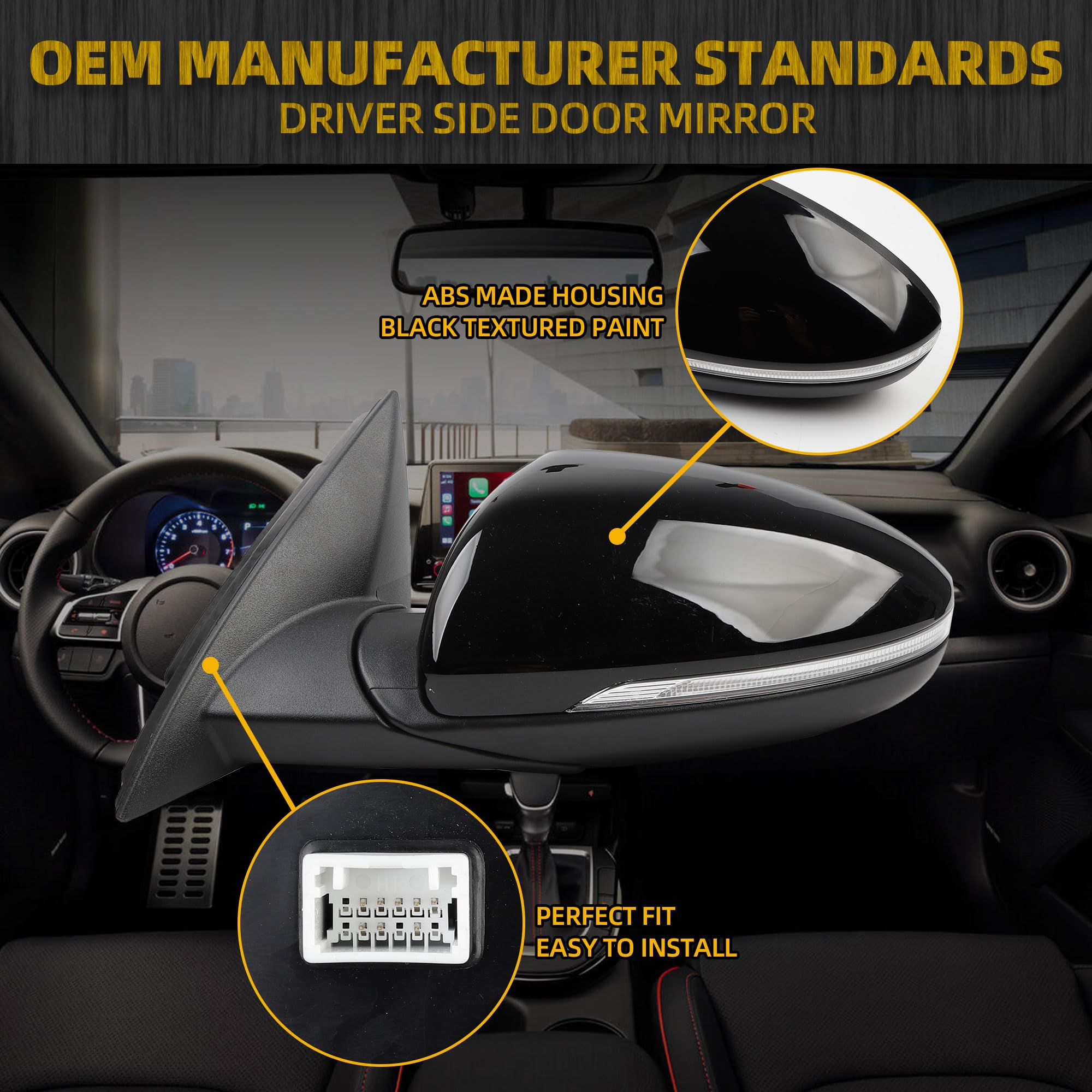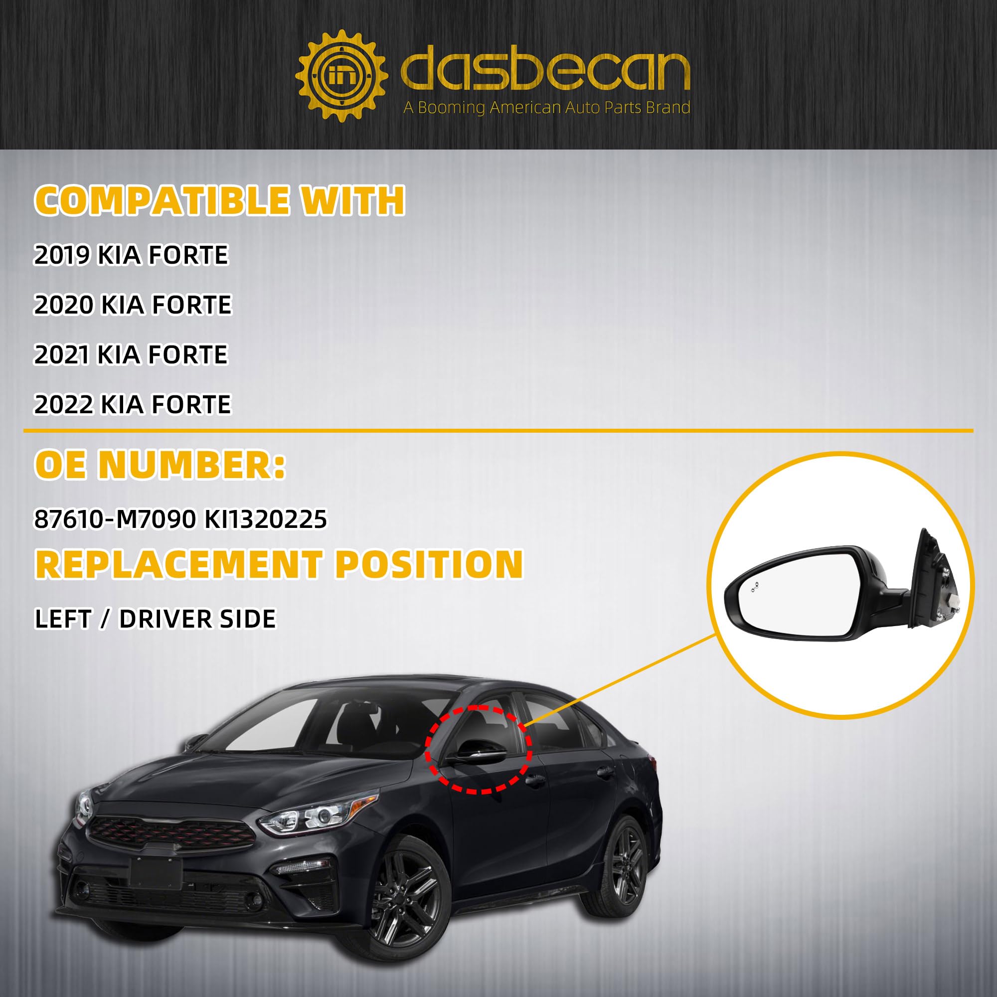 【Comaptible With】The Driver Side Door Mirror Compatible With 2019 2020 2021 2022 2023 2024 KIA Forte