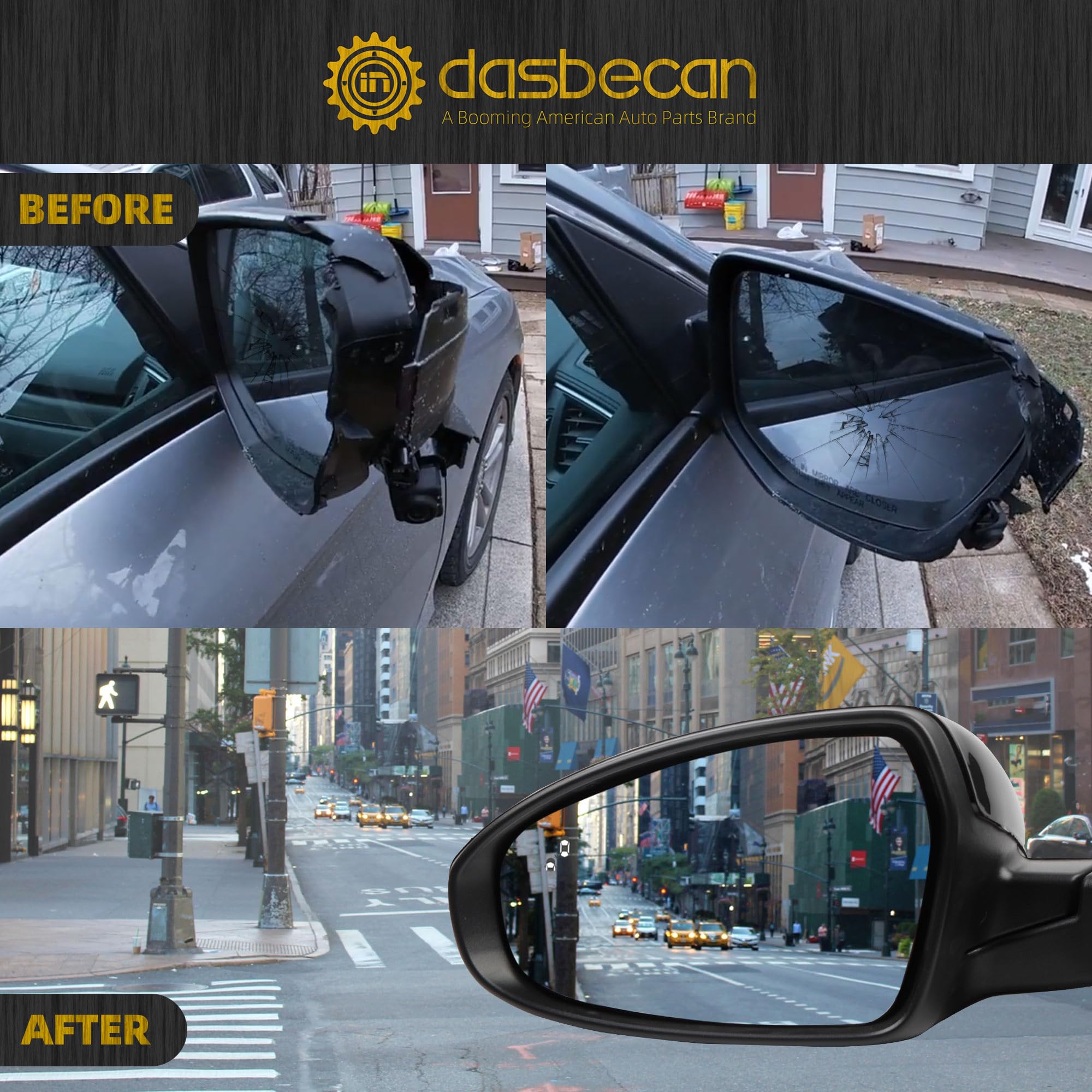 【Function】The Left Side Mirror with Manual Folding, Power Adjustment Glass, Heated, Turn Signal and Blind Spot Detection. Black Paint As Same As Orignal