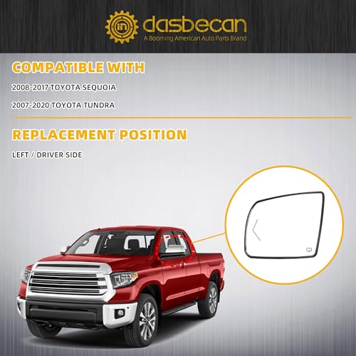 【Comaptible With】The Left Side Mirror Glass Compatible With 2008-2017 Toyota Sequoia; 2007-2020 Toyota Tundra