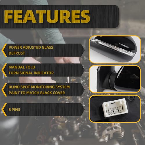 Feature: a. Power Adjusted Glass; b. Defrost; c. Manual Fold; d. Turn Signal Indicator