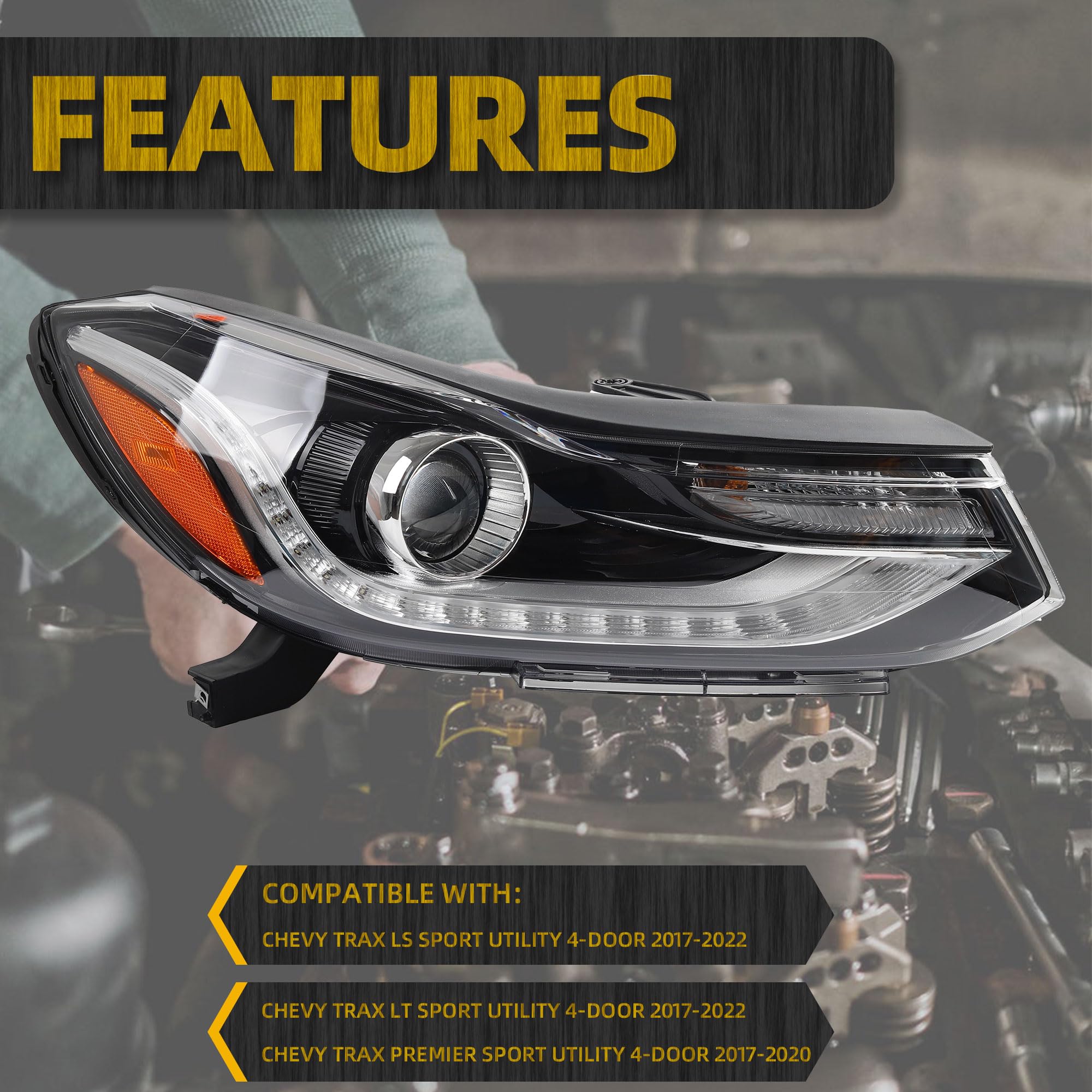 【Compatible with】Dasbecan Headlamp Compatible with Chevy Trax LS Sport Utility 4-Door 2017-2022 Chevy Trax LT Sport Utility 4-Door 2017-2022 Chevy Trax Premier Sport Utility 4-Door 2017-2020 OEM Part Number is 42725481 GM2503450 Please Confirm the Model Number Before Purchasing.