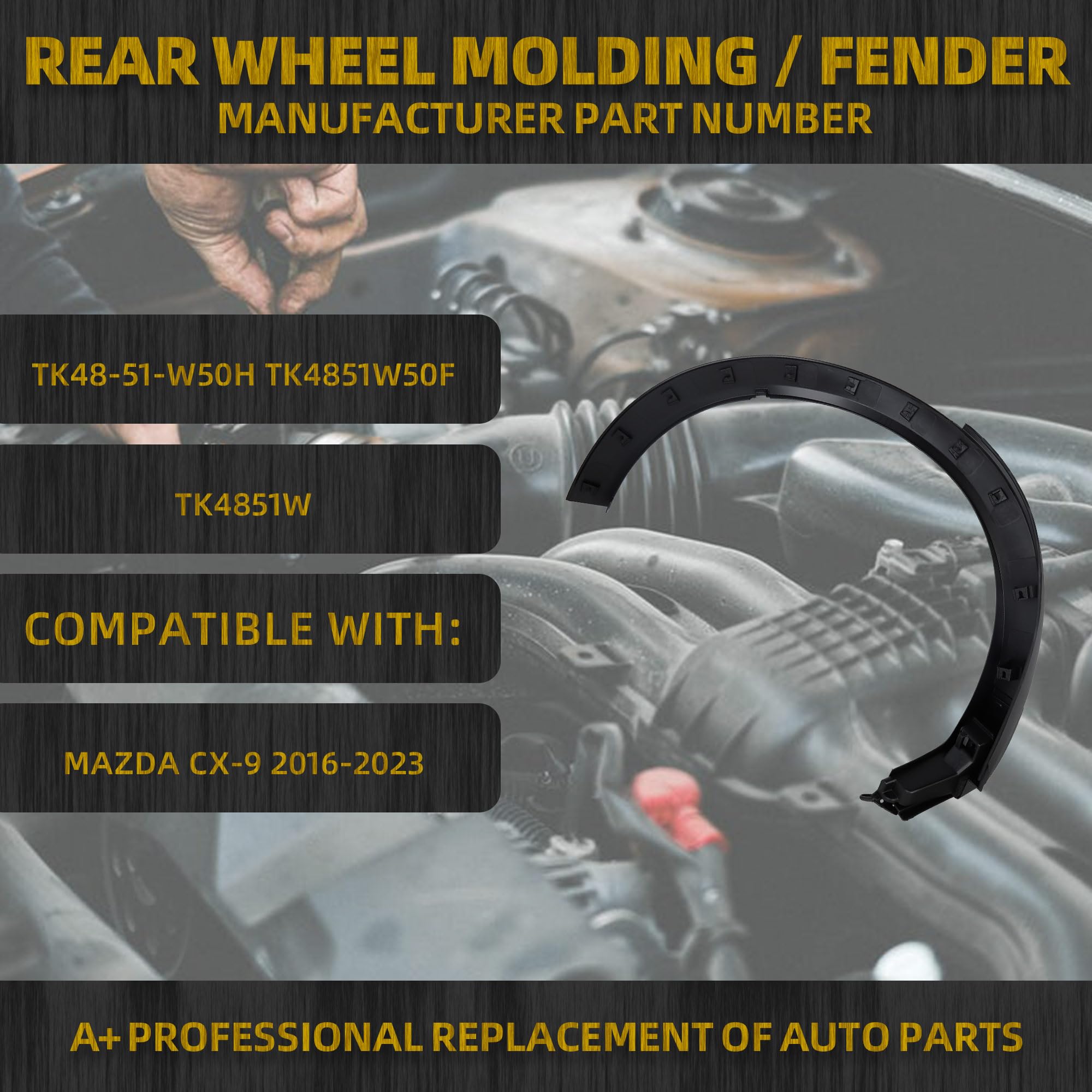 【Compatible with】Mazda CX-9 2016 2017 2018 2019 2020 2021 2022 2023, Rear Left Side Fender Flare Wheel Molding Trim