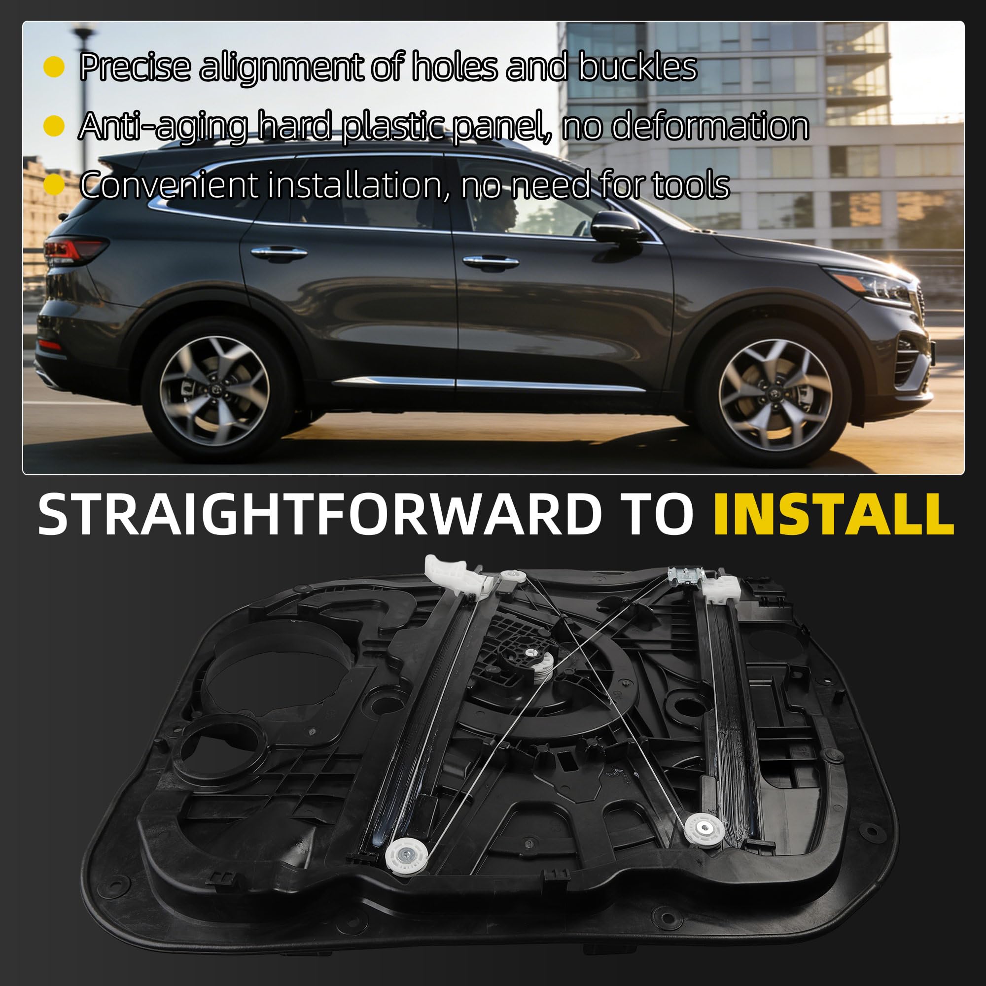 Compatible with: This Front Left Window Regulator Without Motor is compatible with 2016-2020 Kia Sorento.