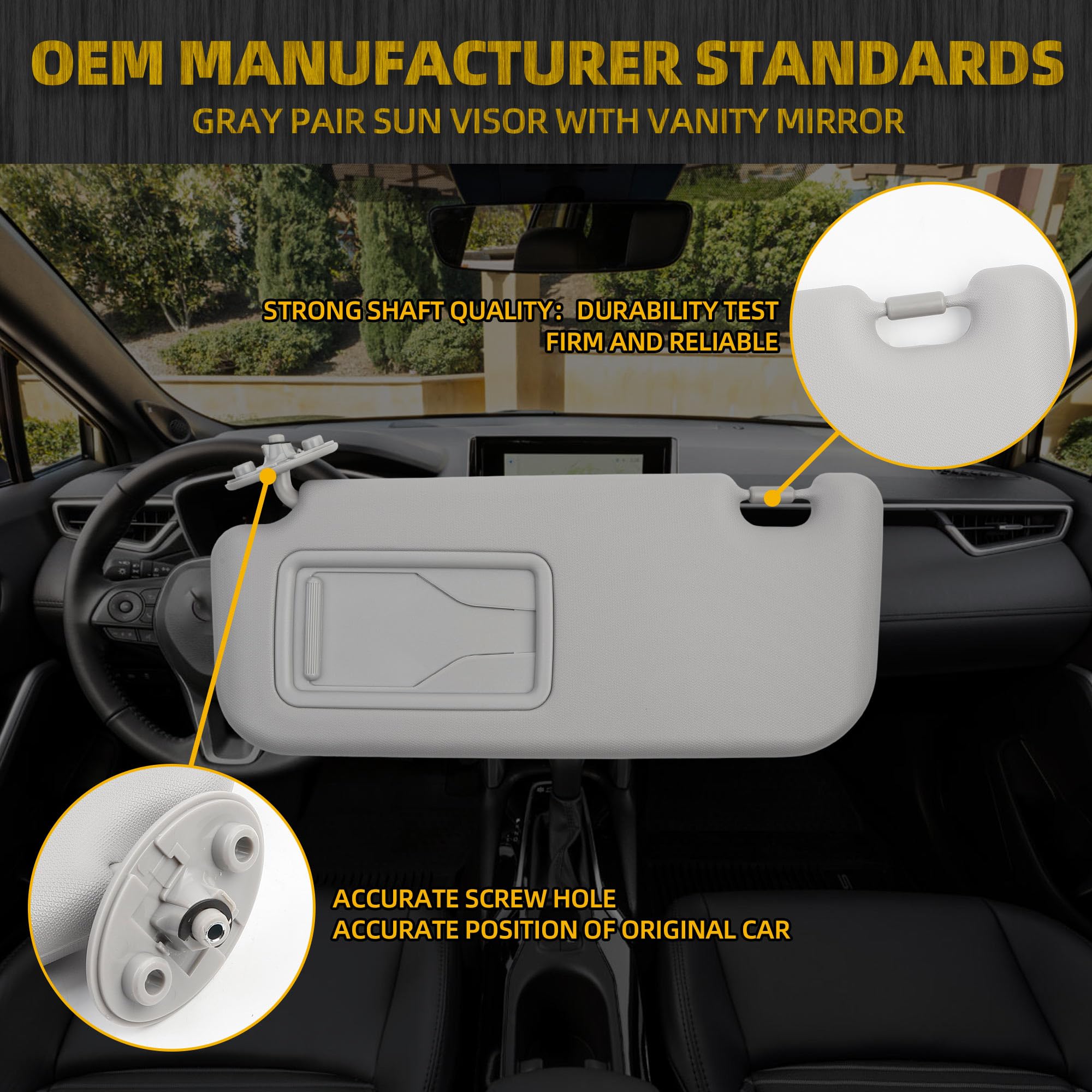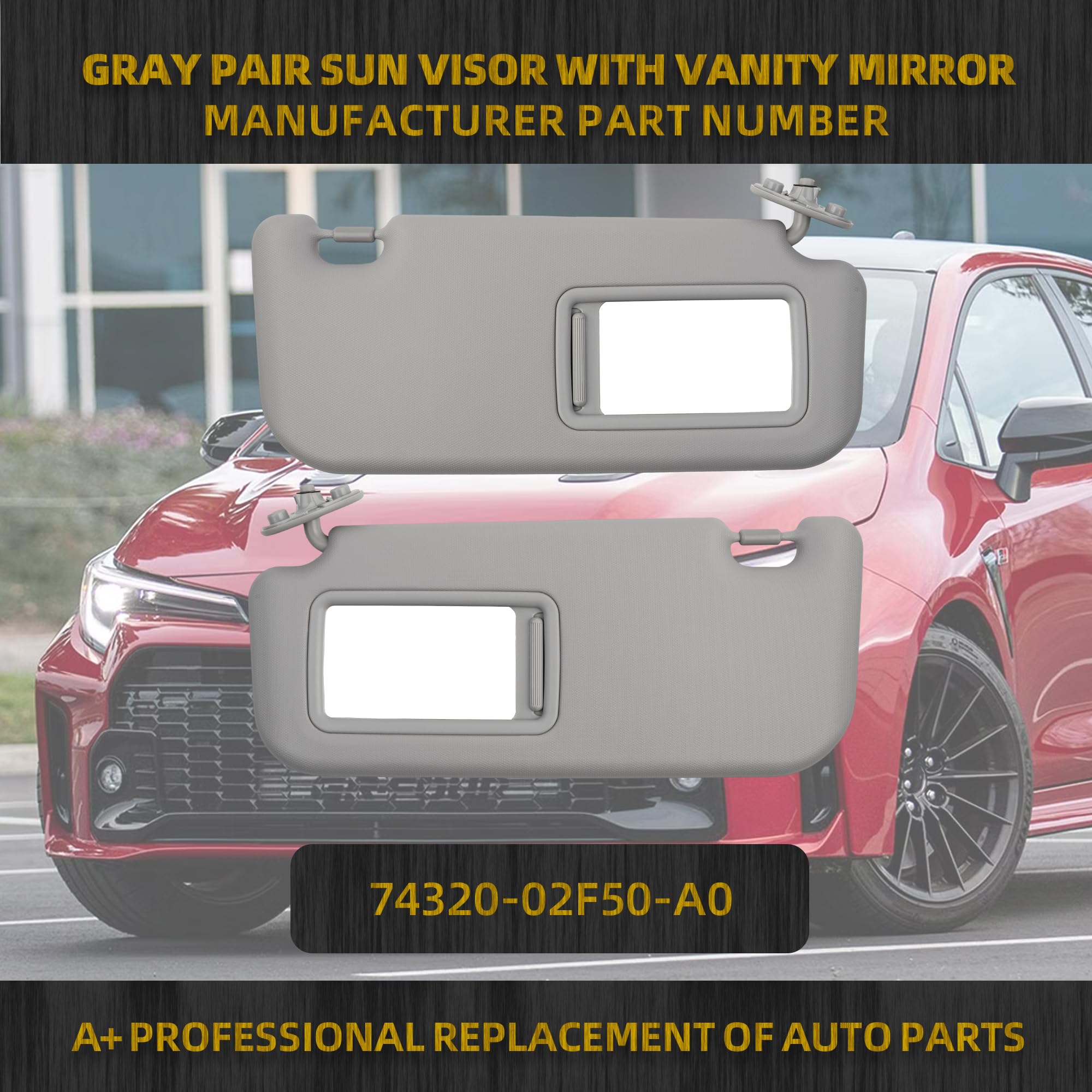 【Description】Beige Pair Sun Visor with Vanity Mirror (Left Driver Side & Right Passager side)