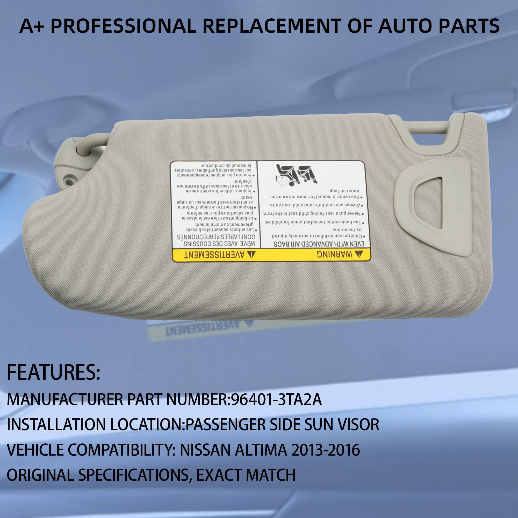 【Description】Gray Right Passenger Side Sun Visor with Mirror and Vanity Light