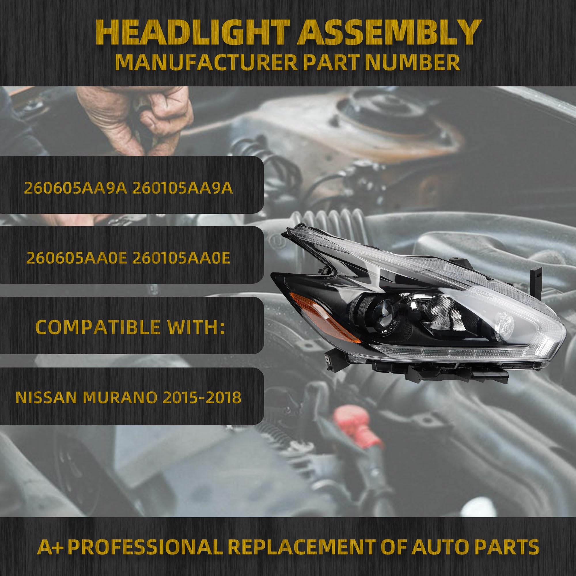 Compatible With: Nissan Murano 2015-2018. (Only compatible with factory halogen headlight w/LED DRL,black cover models.