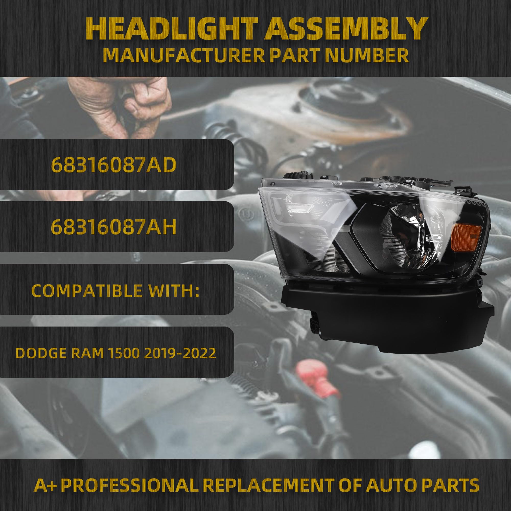 Compatible With: Dodge Ram 1500 2019-2022.Only compatible with factory Halogen;Black Frame.