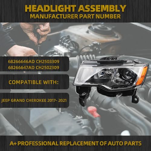 Compatible With: Jeep Grand Cherokee 2017-2021. (Only Compatible With Factory Halogen Headlight w/Chrome Trim Models. Not for HID Models). Bulbs Included.OEM:68266646AD CH2503309 68266647AD CH2502309