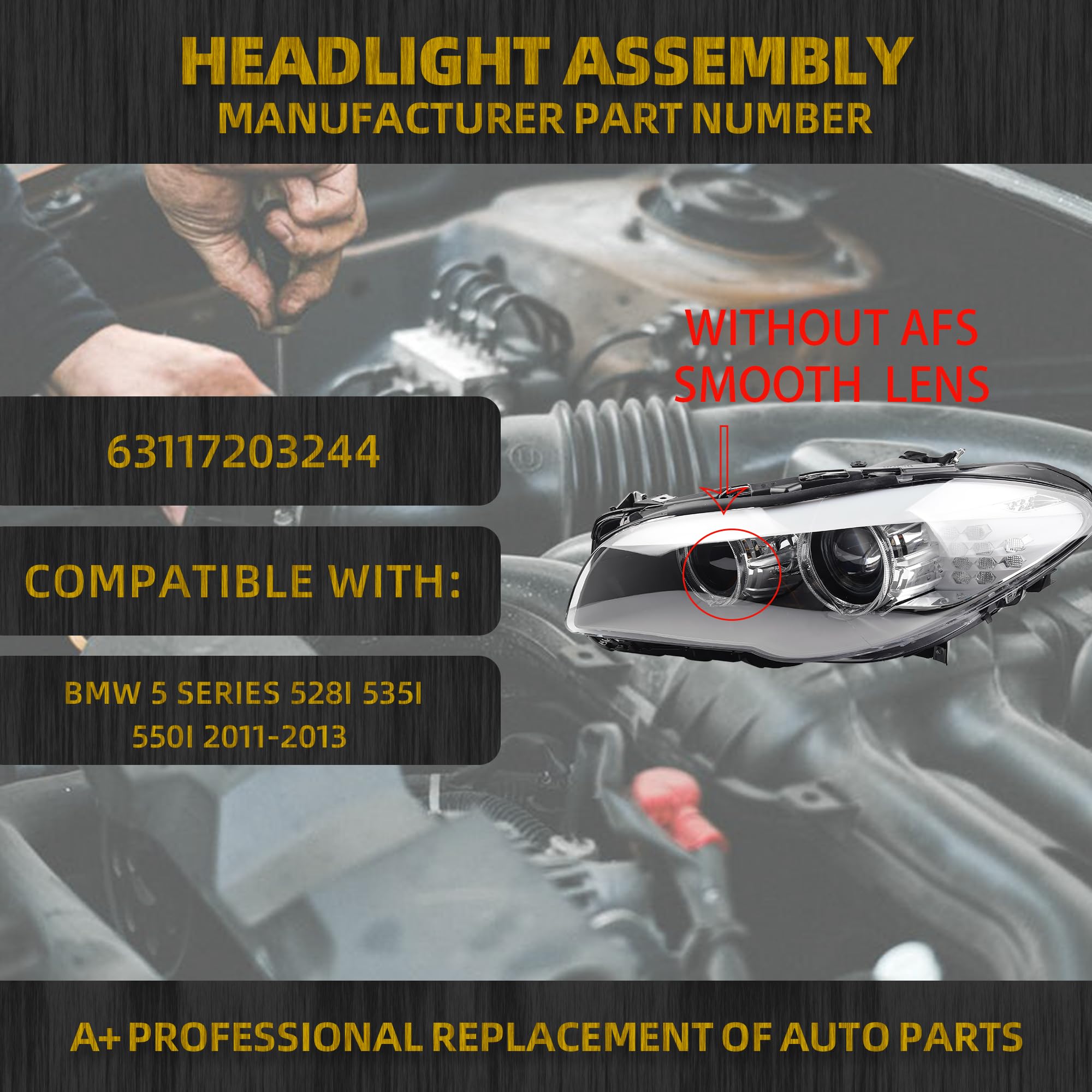 Compatible With:2011-2013 BMW 5 Series 528i 535i 550i M5 Replace# 63117203244 (NOT Compatible with Factory Halogen Models. NOT Compatible with 2011- 2013 BMW 5 Series 528i 535i 550i M5 F10 F18 HID/Xenon W/AFS model)