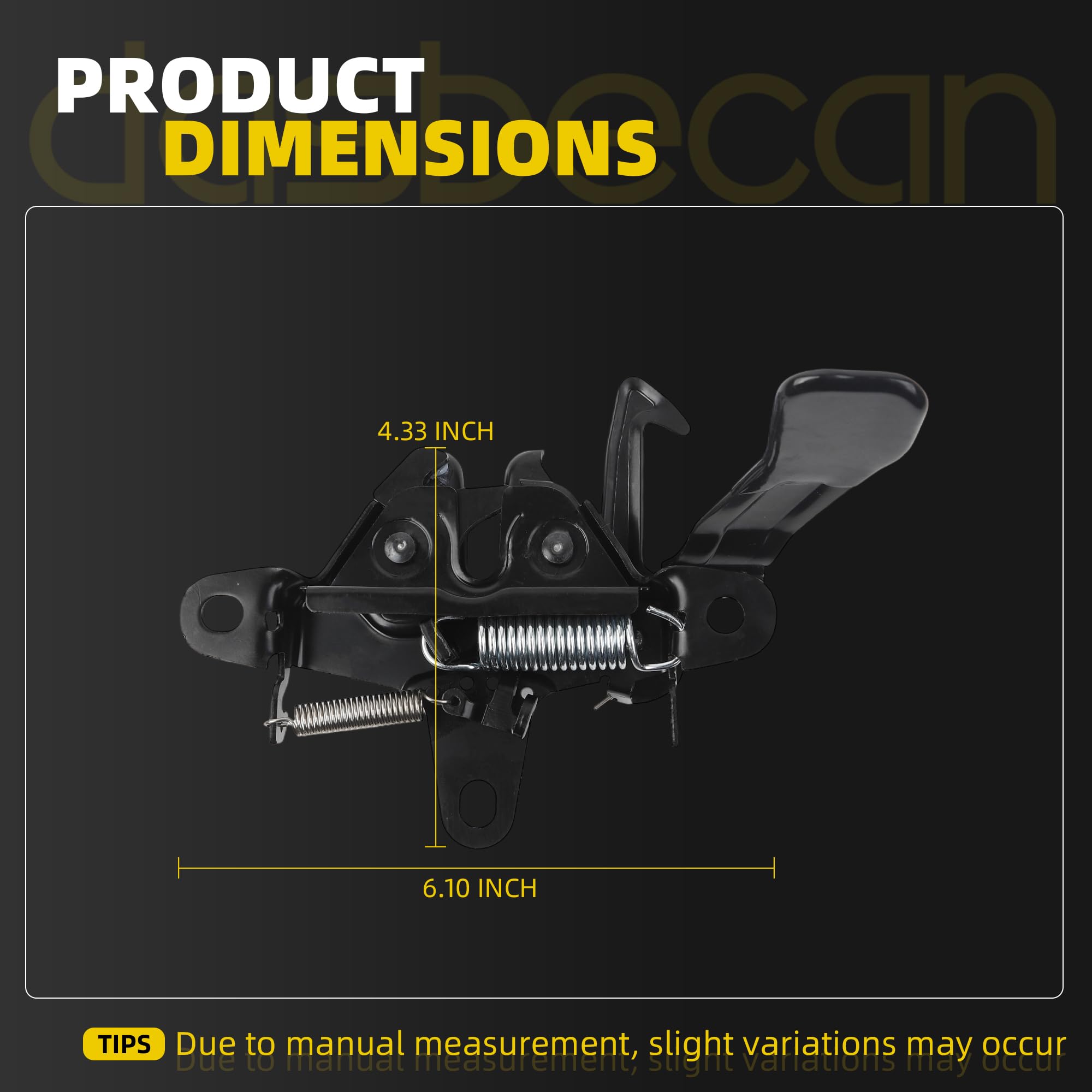 【Features】This hood lock assembly is engineered for peace of mind, providing a secure hood closure and added theft protection. It delivers consistent, smooth operation and reliable performance through all seasons. Constructed from durable metal, it offers excellent strength and impact resistance for long-lasting service. Built to endure daily wear and tough conditions, this product is an investment in your vehicle's security and longevity.