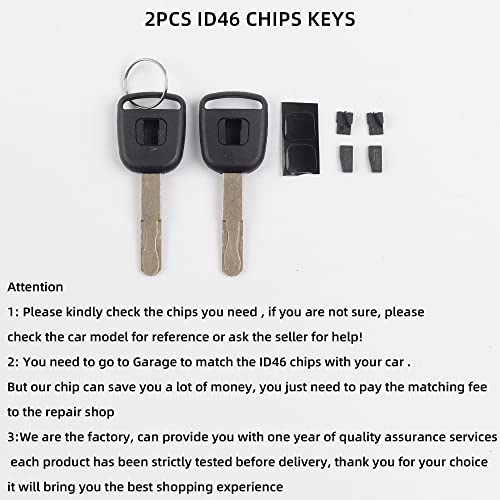【Chip ID46 keys】Ignition Switch Lock Cylinder is universal for all Honda models (03-11), while different kinds of chips fit different years. We only offer ignition switch lock cylinder with chip ID 46 keys .Please kindly check the model before ordering.