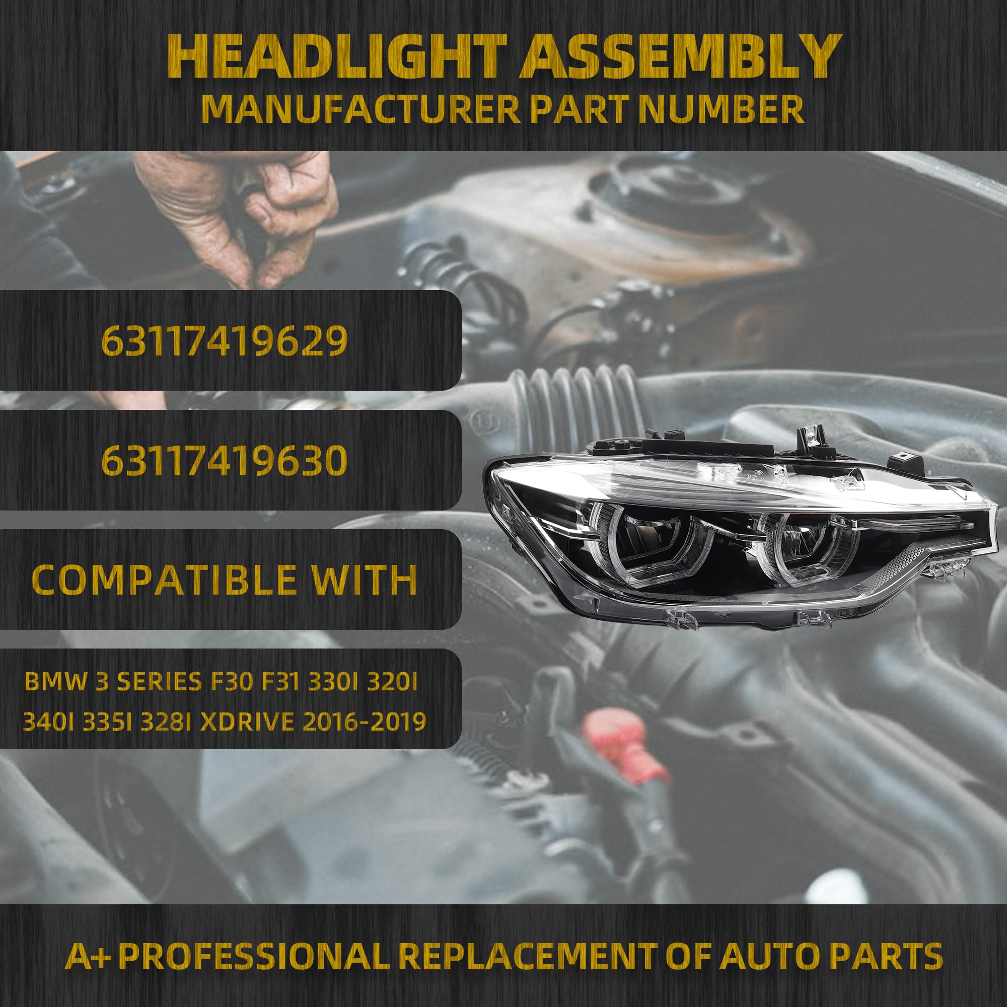 Compatible With:2016 2017 2018 BMW F30 3 Series 320i/330i/340i/328d/330e;2017 2018 2019 BMW 3 Series 330i xDrive Replaces# 63117419629 8738715 63117419630 8738716