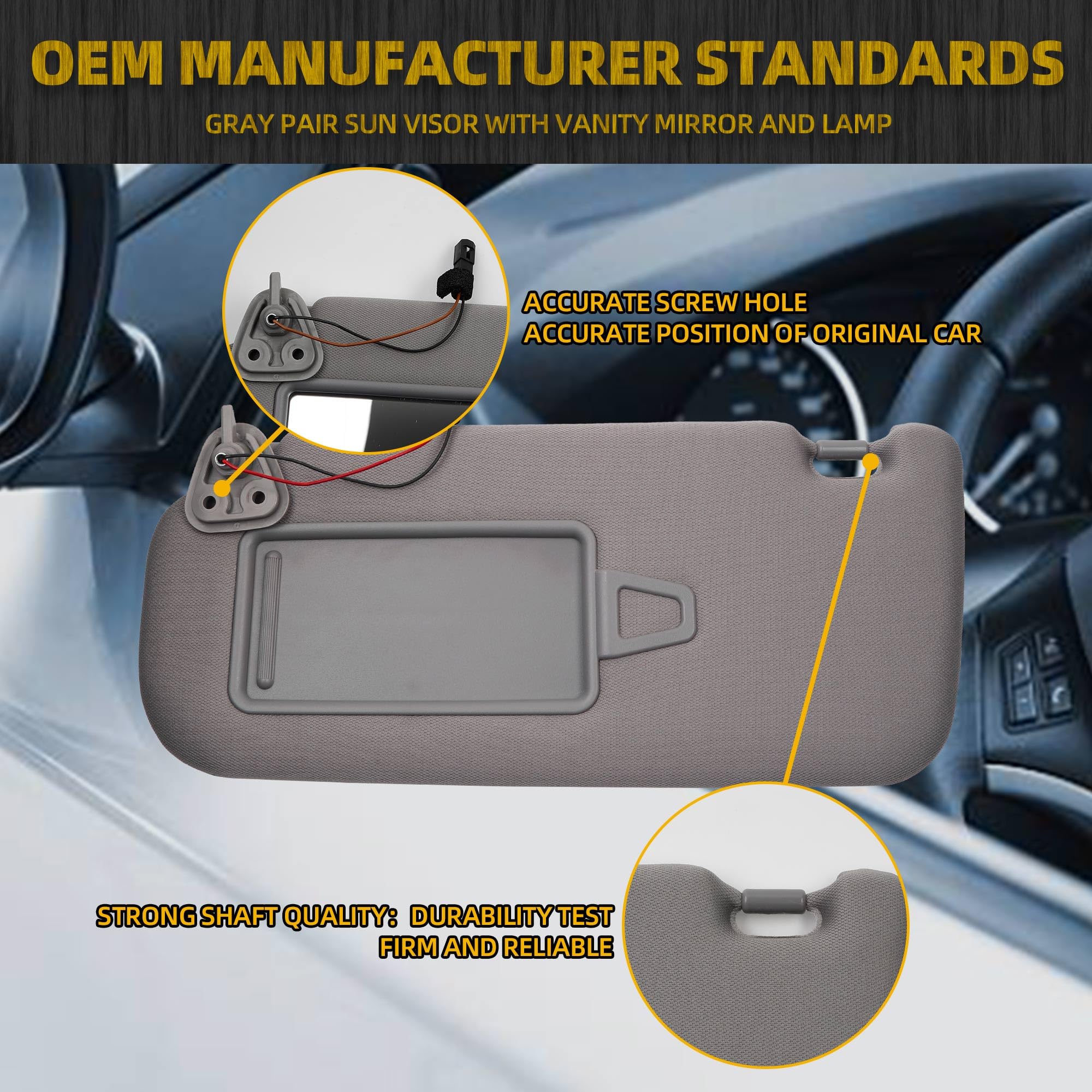 【Description】Gray Left Driver & Right Passenger Side Sun Visor Sun Shade with Vanity Light and Makeup Mirror