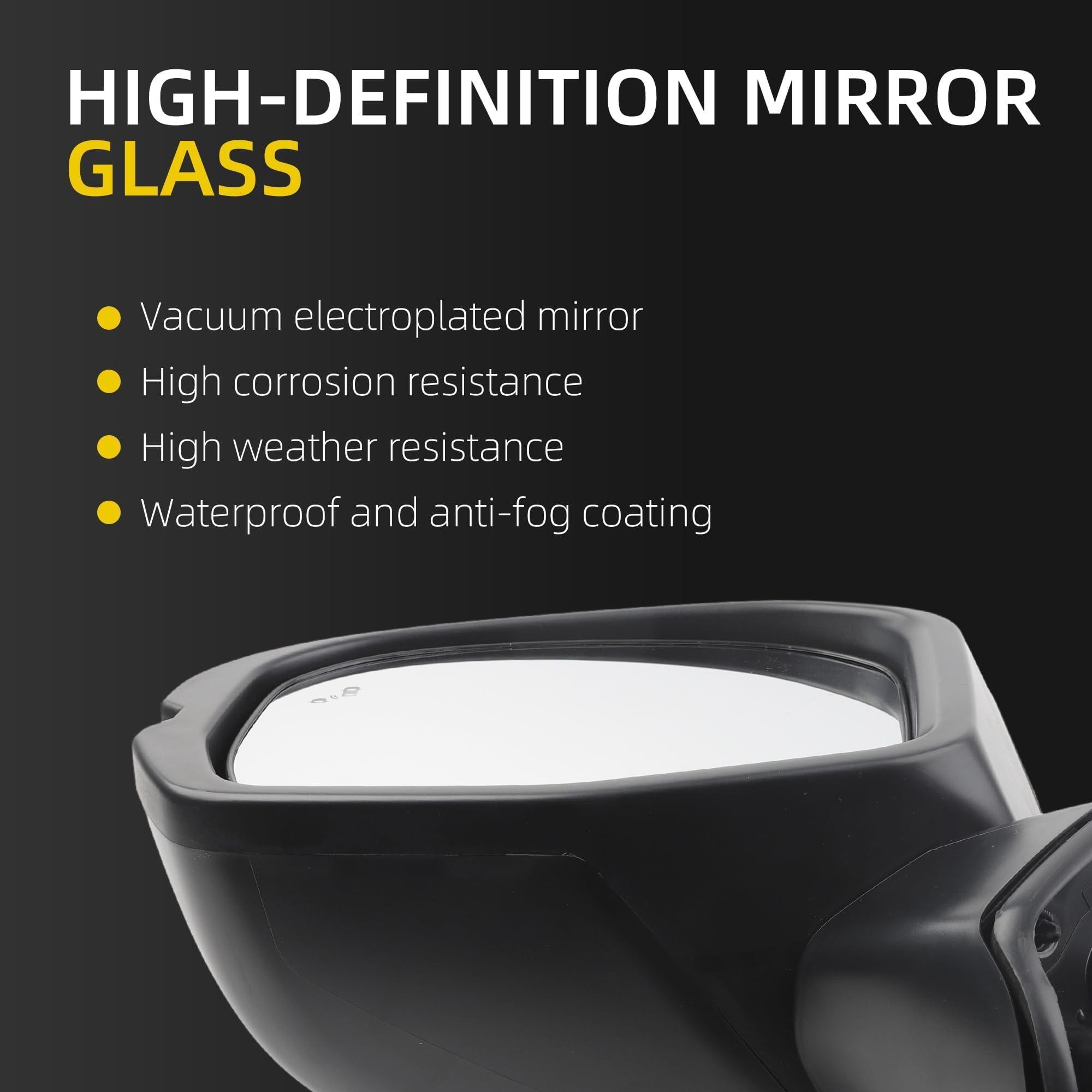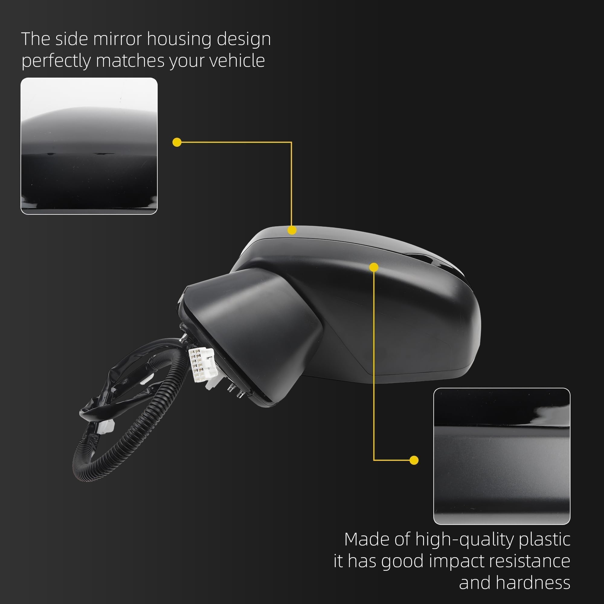 Strict quality control: Utilizing a robust ABS plastic shell and high-definition mirror, it expands the field of vision, reduces blind spots, and easily handles various weather conditions. For many years, we have been committed to producing automotive parts and components, establishing a rigorous production system so you can assured about product quality.