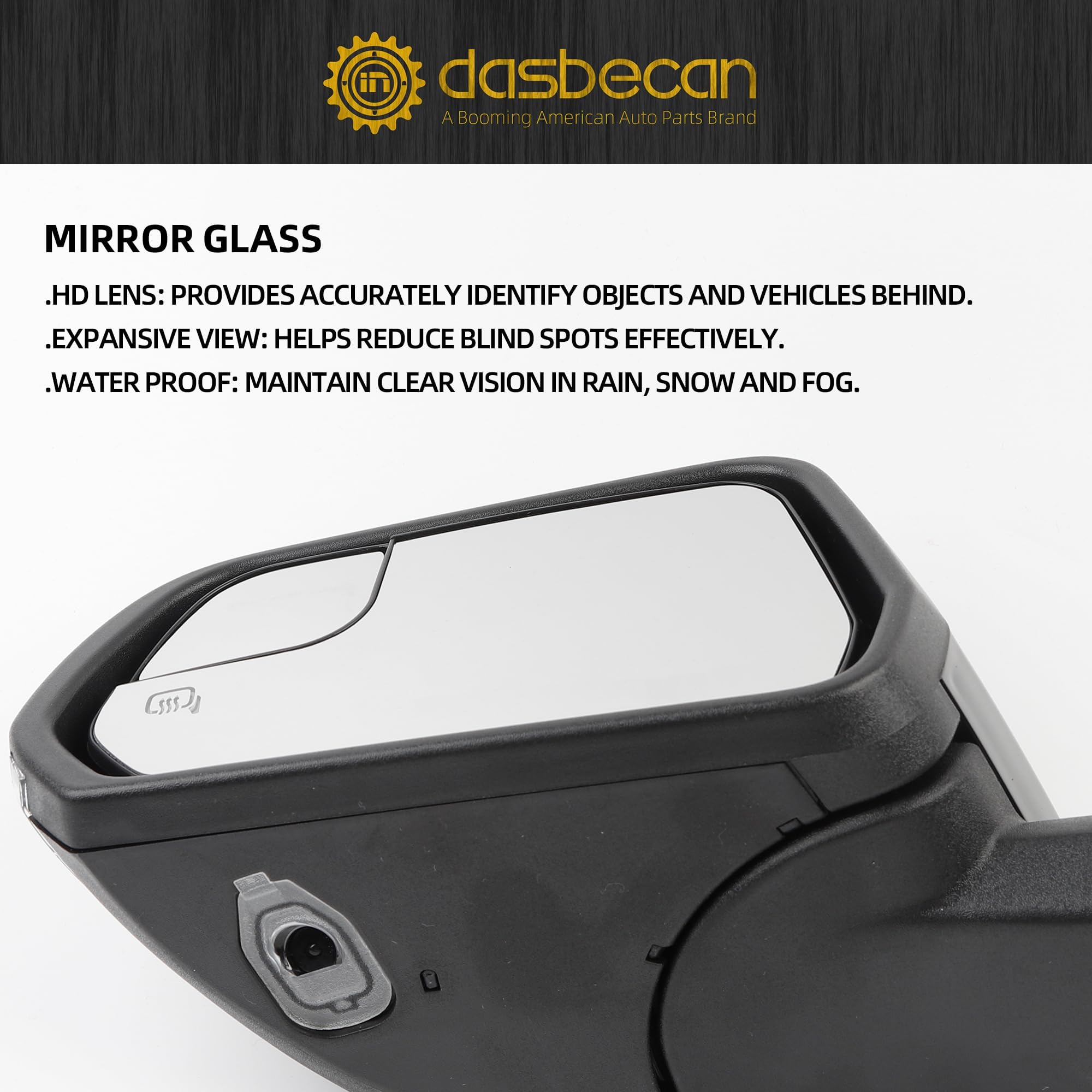 Feature: Power Adjusted Glass, Manual Folding, with Heated Function, with Blind Spot Glass, with Turn Signal Light Puddle Lamp, 7 Pins Connector, Glossy Black Cover.
