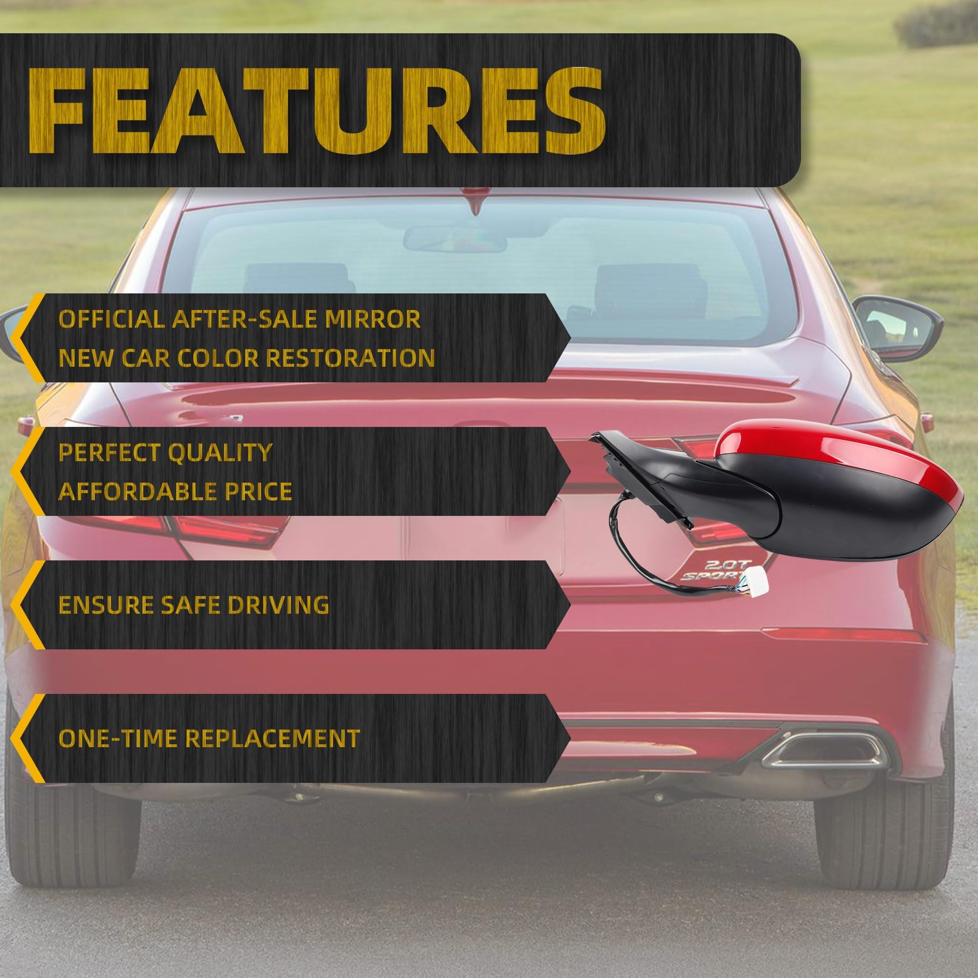 【Fitment】The Accord door mirror driver side fits for 4 Door Sedan 2018-2022 Accord Sport ;2018-2020 Accord EX ;2018-2021 Accord Hybrid EX ;2022 Accord Hybrid Sport