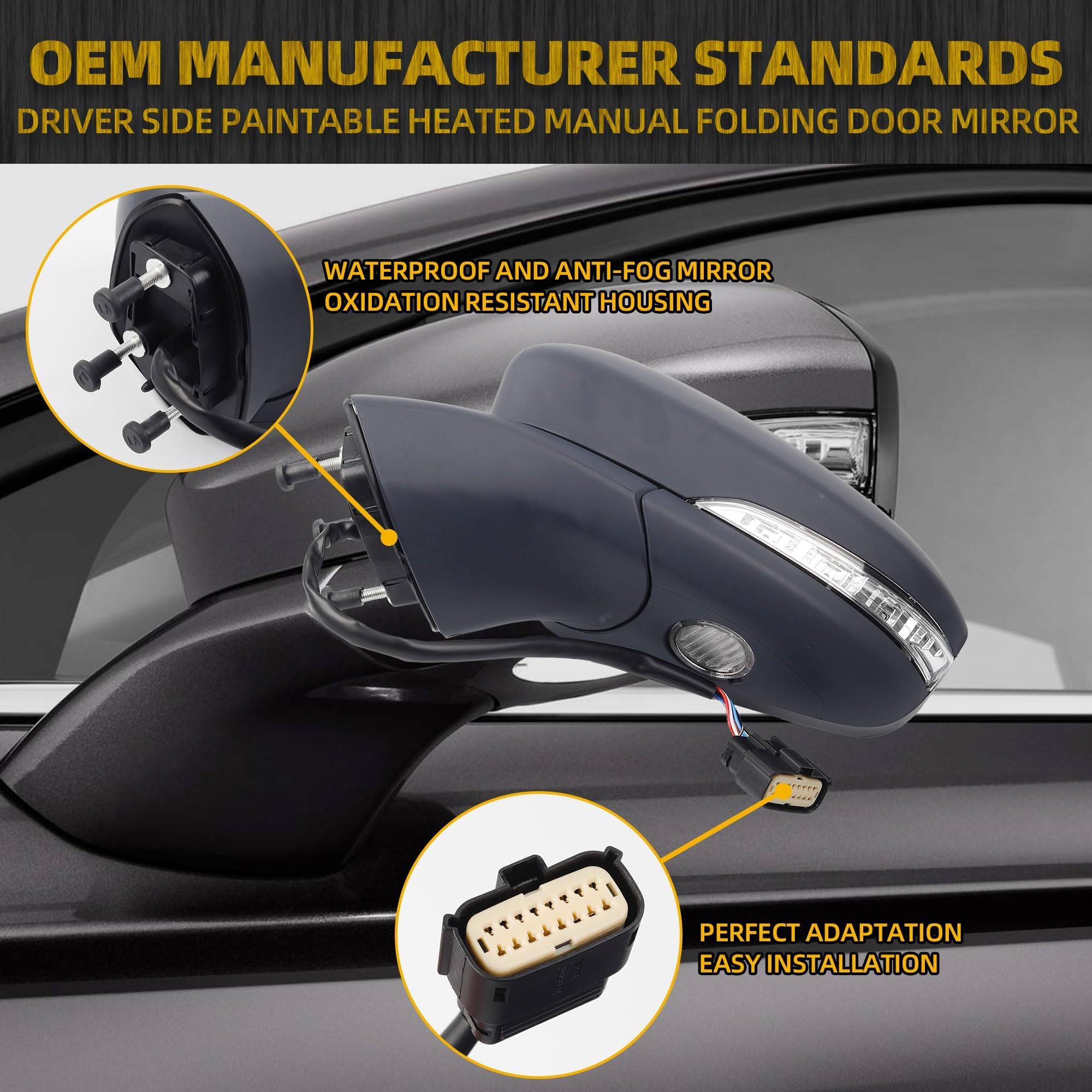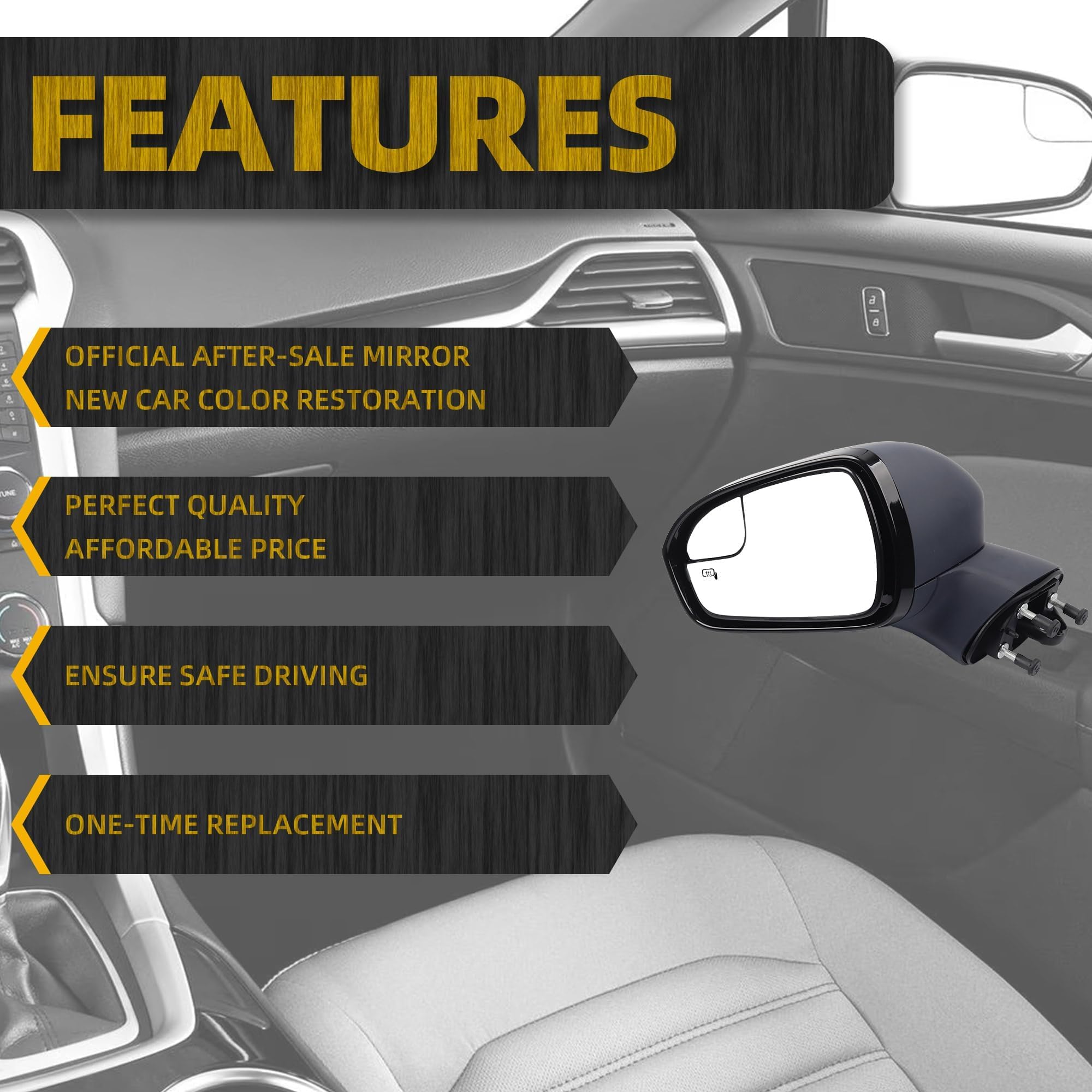 【Feature】Our Ford Fusion mirror is Paintable, Reliable and Stable, with Good Hardness and Toughness to Improve Long Life, 100% Tested before shipping, Corrosion Protection, the driver side mirror totally Meeting OEM Requirements.