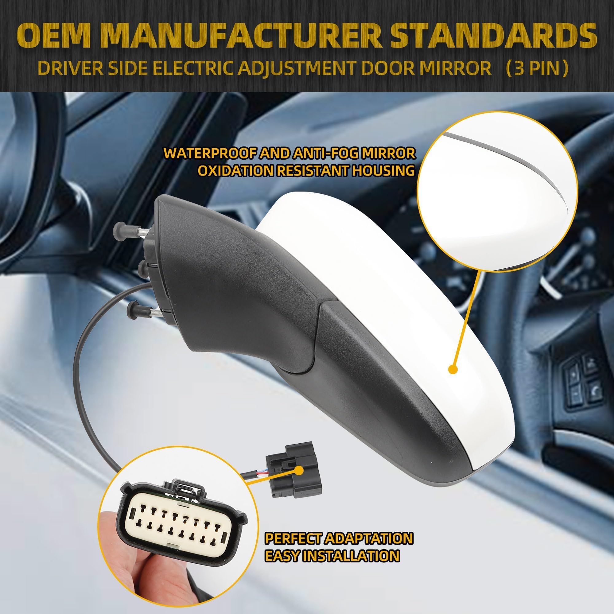 【Function】Our left Side Mirror Assembly is designed with 3Pins, Electric Adjustment. No Heating, No Turn Signal,No Electric Folding,No Blind Spot Detection,NO Auto Dimming Function