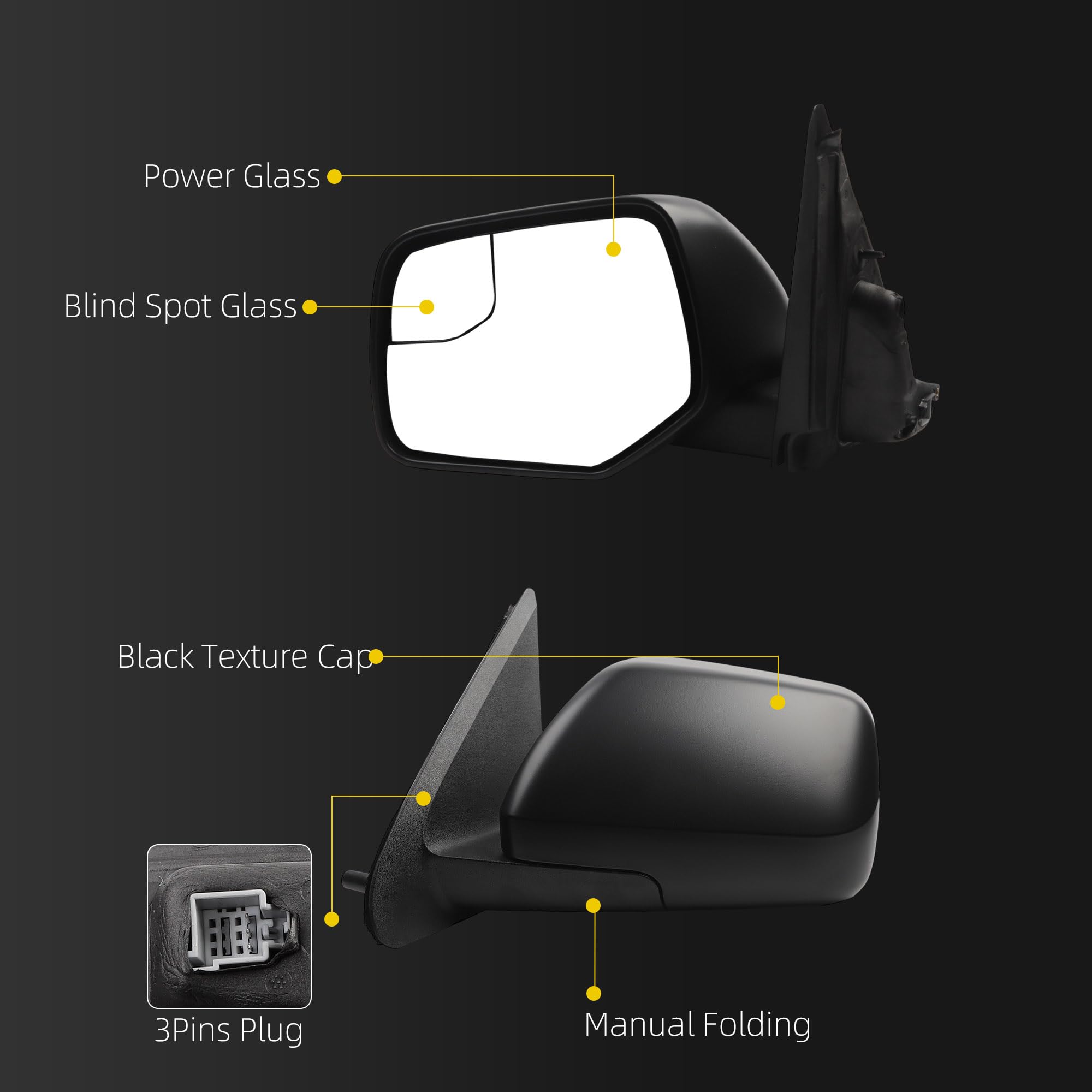 【Feature】 The Left Side View Mirror is Equipped with Power Glass丨Manual Folding丨Blind Spot Glass丨Without Heated Function; Please Test Functions Before Buckling The Panel