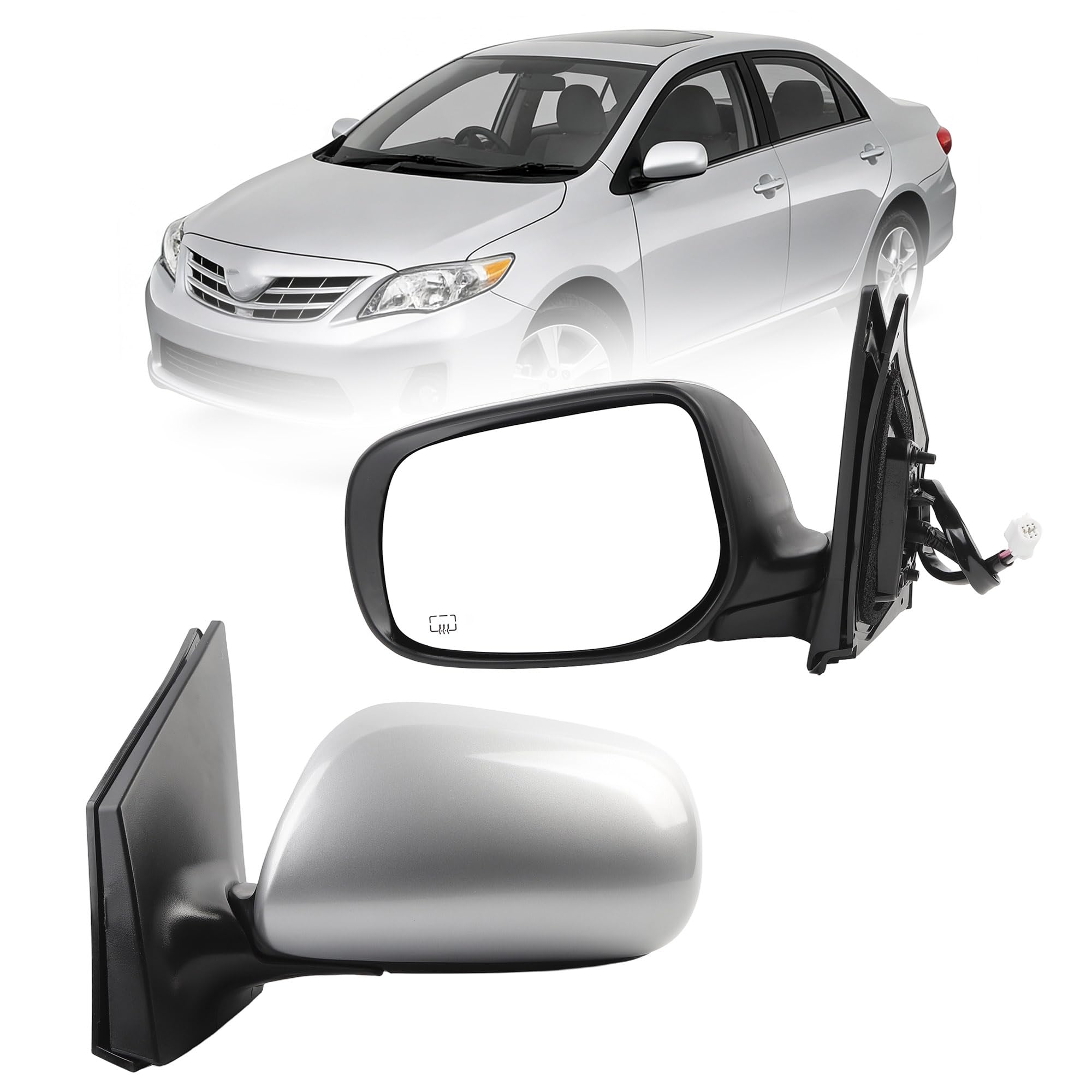 【Excellent Performance 】This Silver Corolla Rearview Mirror is Equipped with Power Heated Glass and Manual Folding Functions, and Its Mirror Surface is A Convex Mirror, Which Can Broaden Your Vision and Enhance Driving Safety While Driving