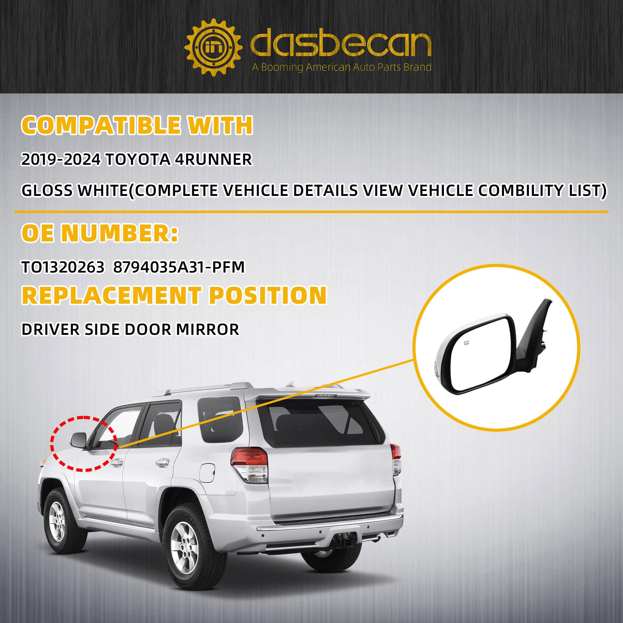 【Comaptible With】 The Left Side Mirror Compatible with 2010 2011 2012 2013 Toyota 4runner