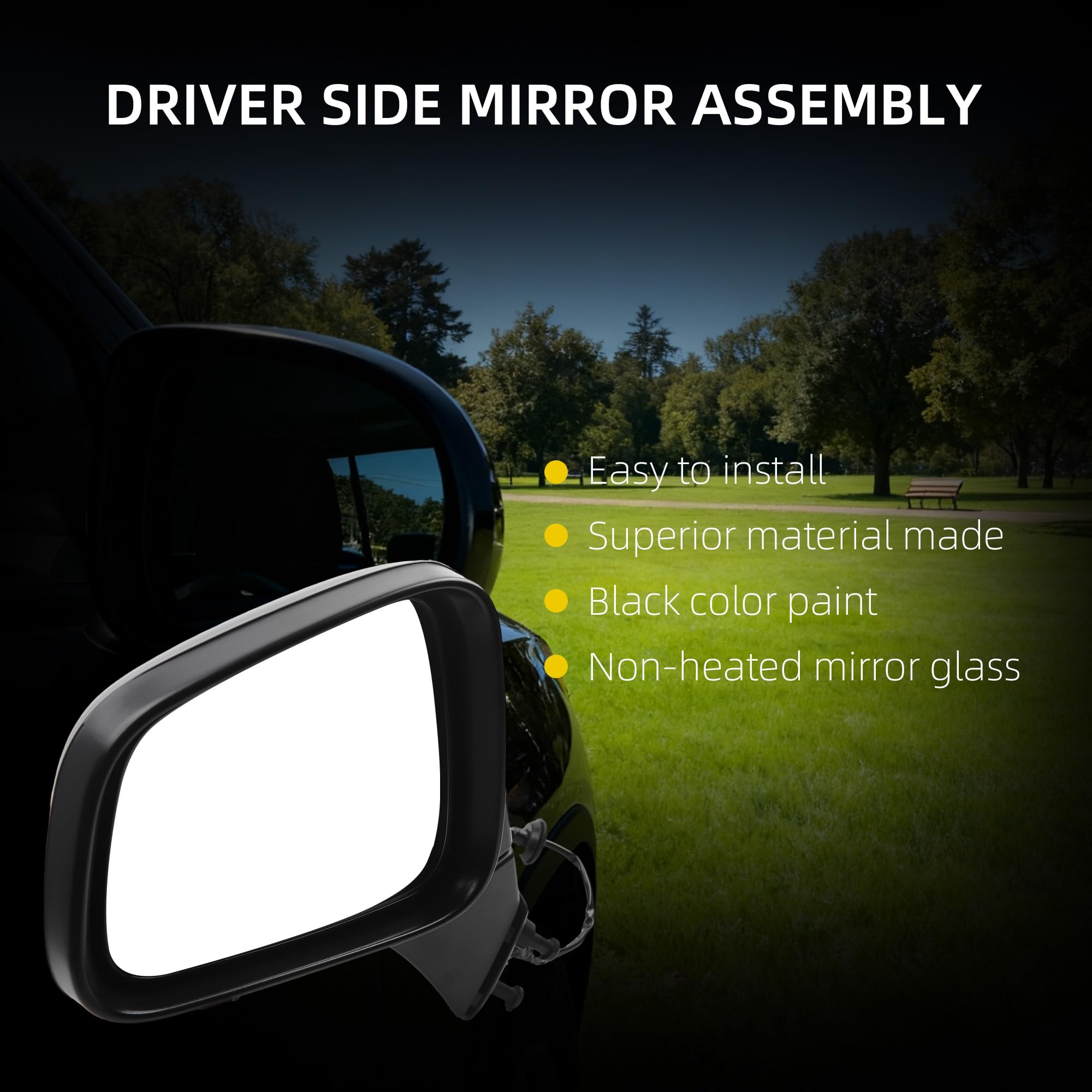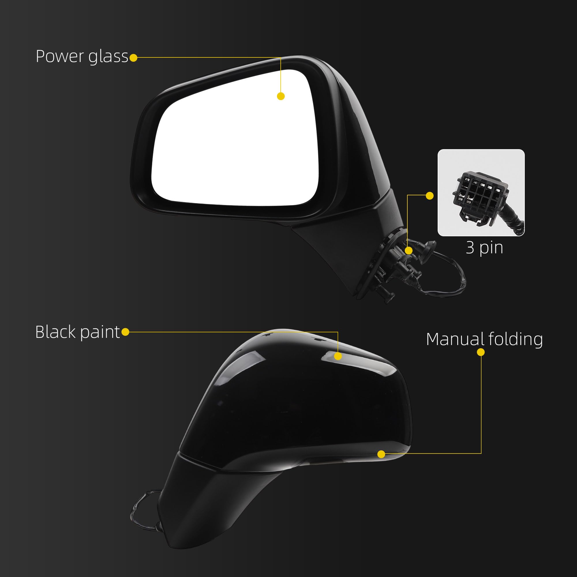 【Feature】 The Left Rear View Mirror is Equipped with Power Glass丨Manual Folding丨Non-Heaterd丨Black Mirror Cover