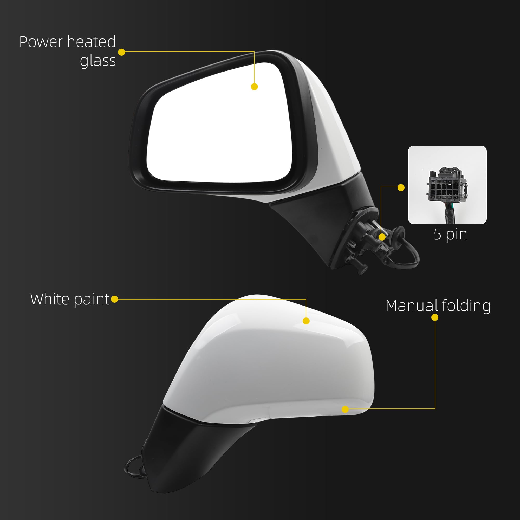 【Feature】 The Left Rear View Mirror is Equipped with Power Heated Glass丨Manual Folding丨White Mirror Cover