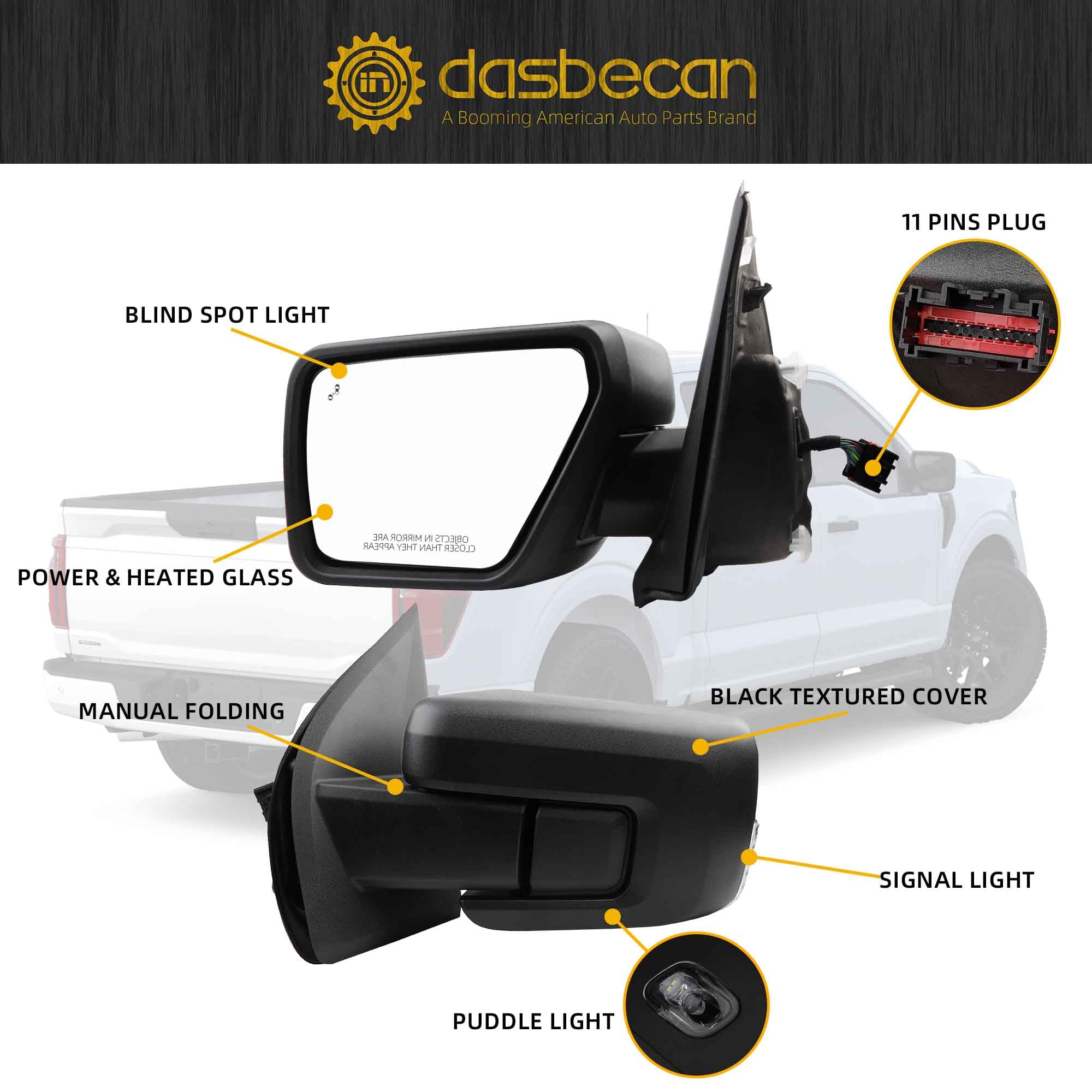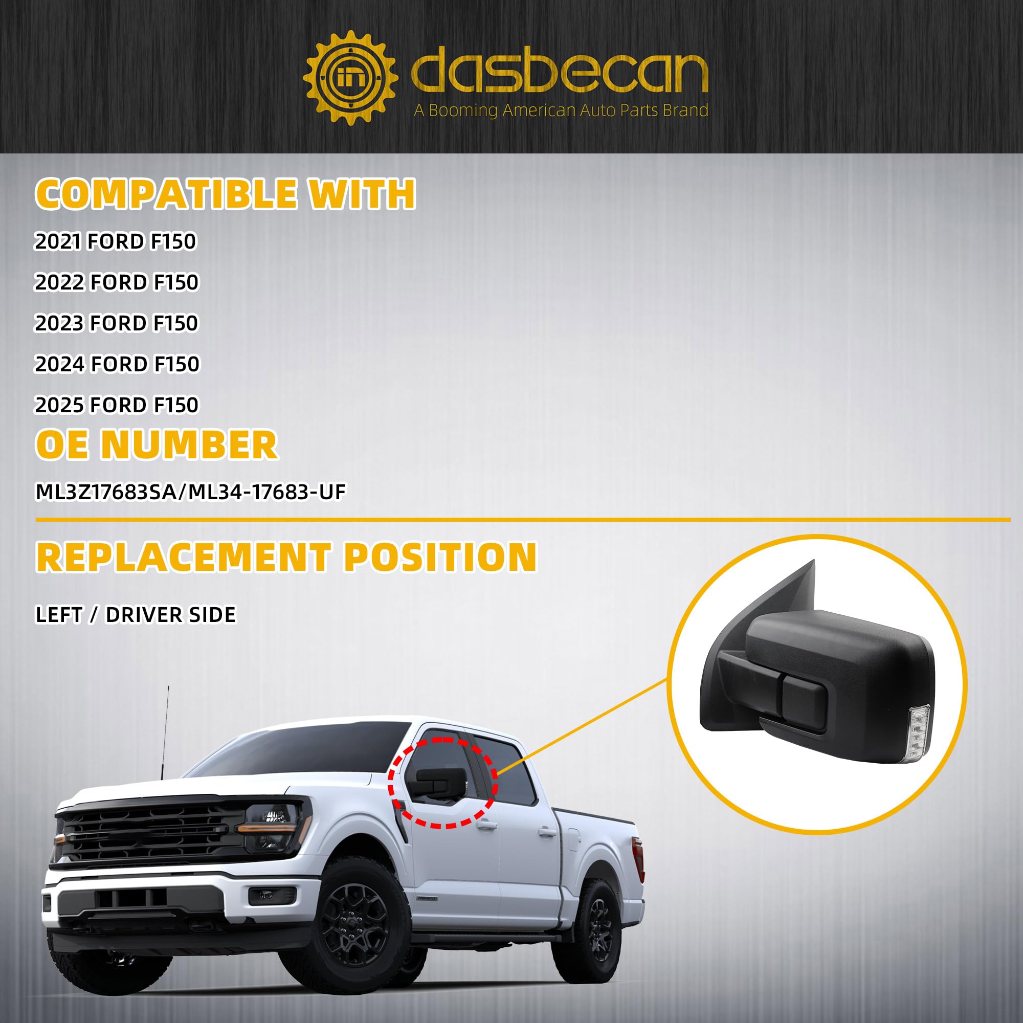 【Comaptible With】 The Left Side Mirror Compatible with 2021 2022 2023 2024 Ford F150