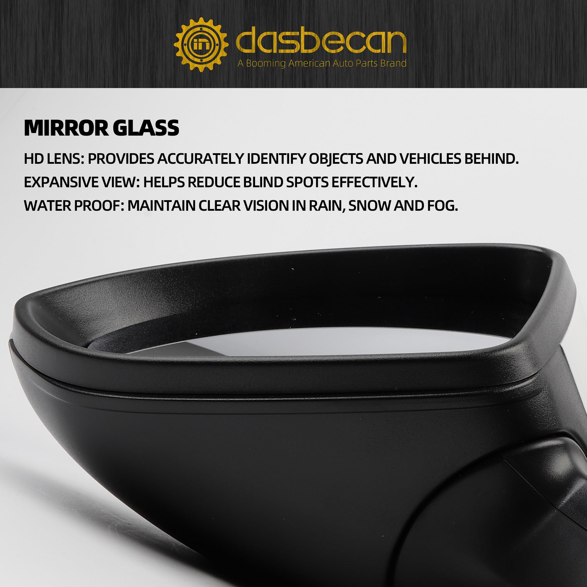Advantages: The side door mirror undergo rigorous testing procedures.They are of high-quality standard and can be adapted to your vehicle's original mirror.This side door mirror assembly is manufactured to meet OEM standards, providing a clear, stable, and distortion-free reflection for enhanced visibility and driving awareness.