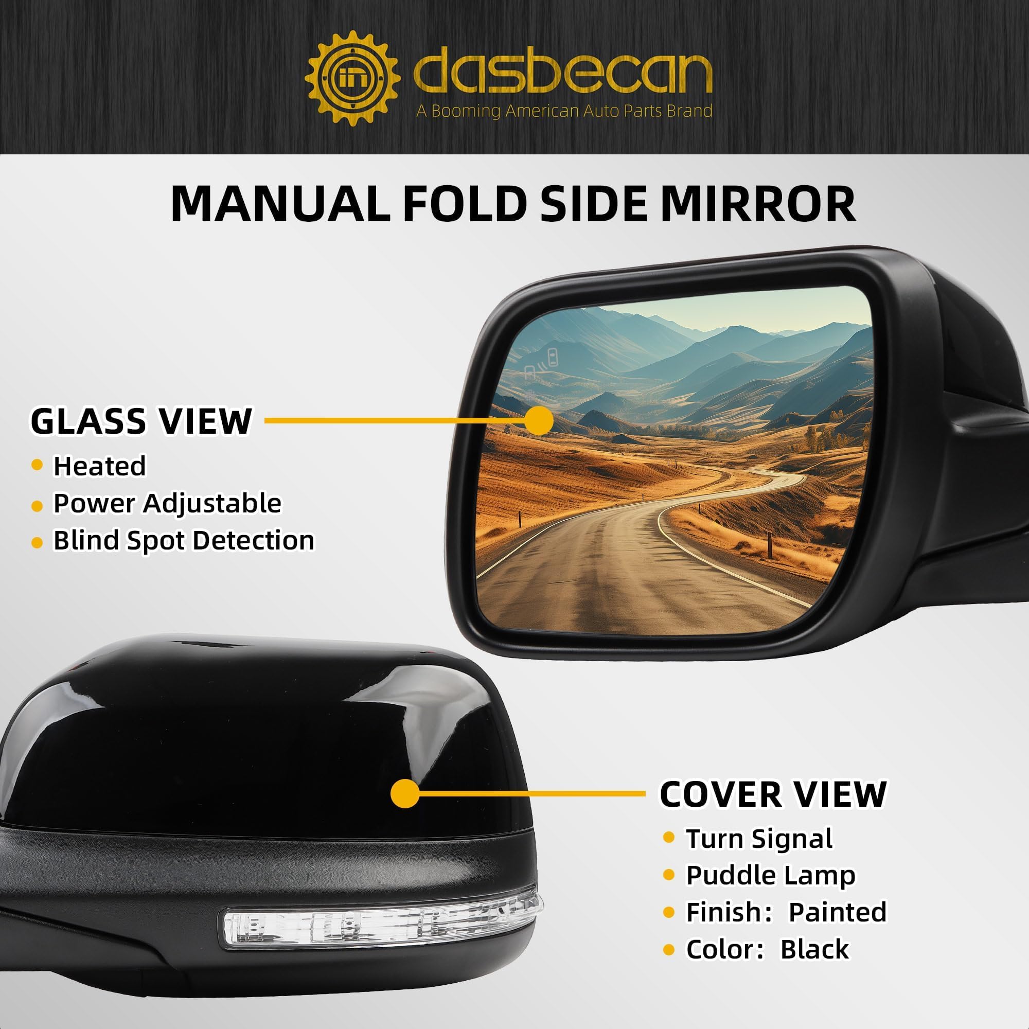 Function: Power Adjustable Mirror Glass, Manual Folding, with Heated Function, with Turn Signal Light Puddle Lamp, with Blind Spot Detection BSD, Glossy Black Cover, 9 Pins Connector